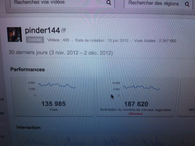 Les performances de la chaine P.O.A en novembre 2012 sont de 135 985 vues (voir tableau 2). Ce chiffre est en hausse constante, du fait du référencement naturel qui augmente avec le temps et de l’augmentation régulière de vidéos mises en ligne.