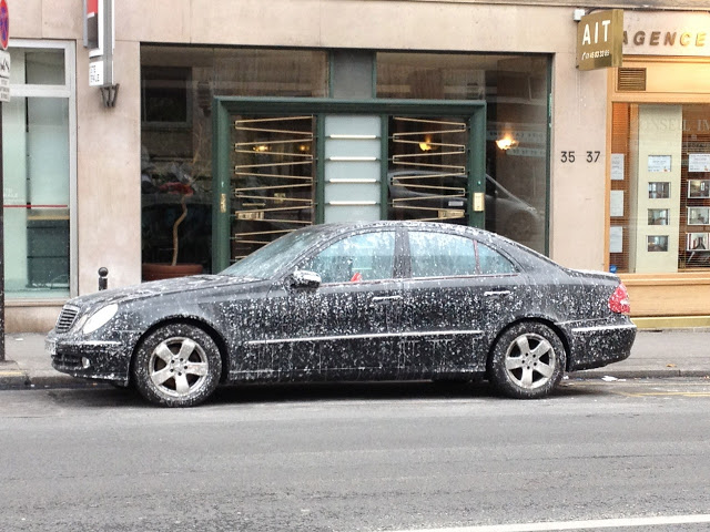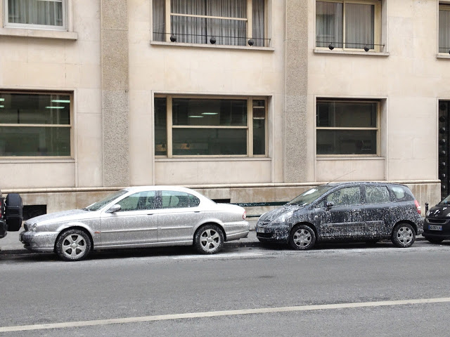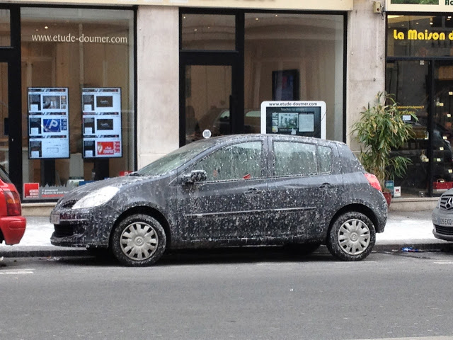 Choses vues en ce mois de février 2012 dans les rues de Paris après le passage d'une saleuse/sableuse la semaine dernière, lors des températures polaires qui ont traversés le pays. Les compositions de carrosseries auraient pu inspirer Cesar et ses fameuses compressions.