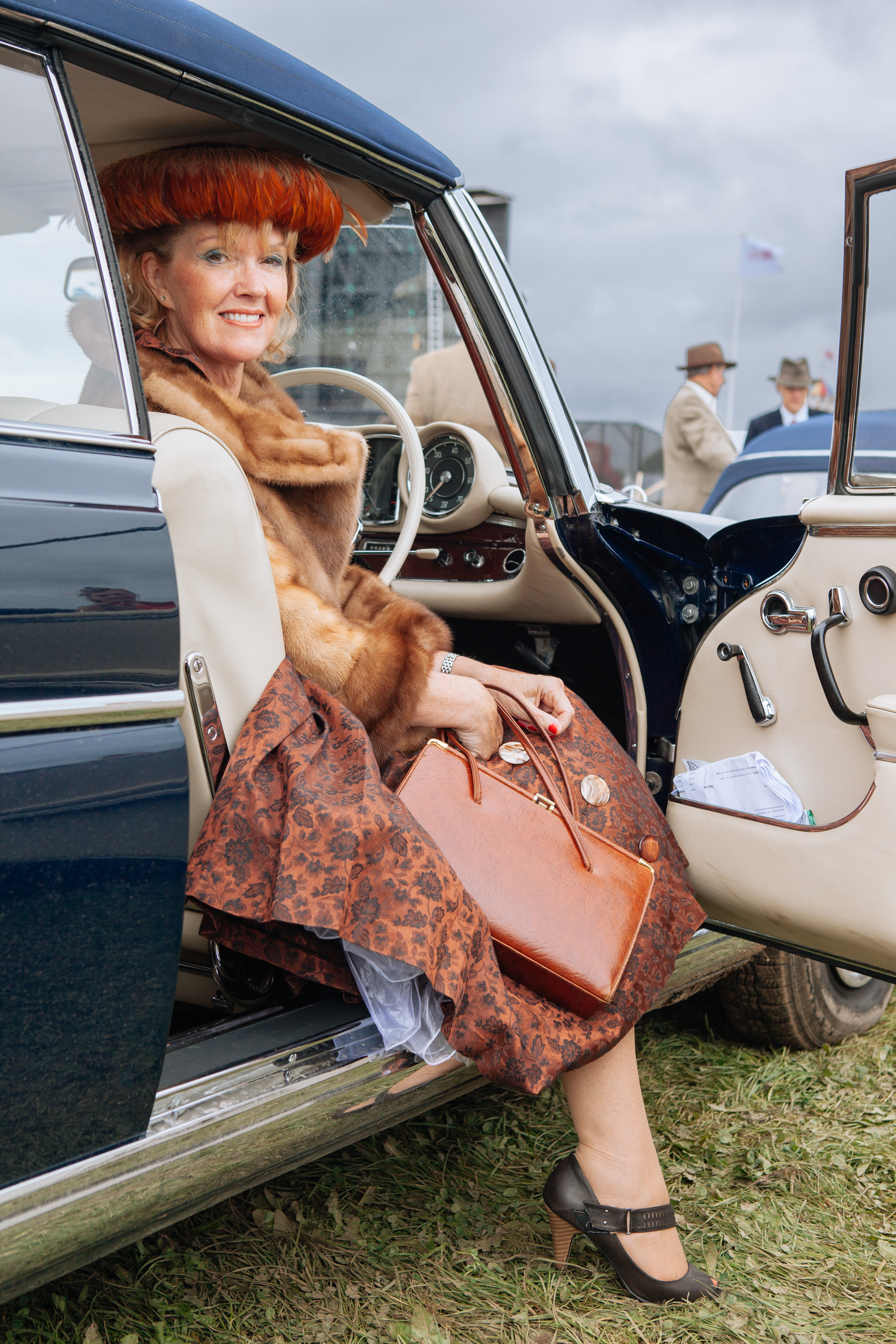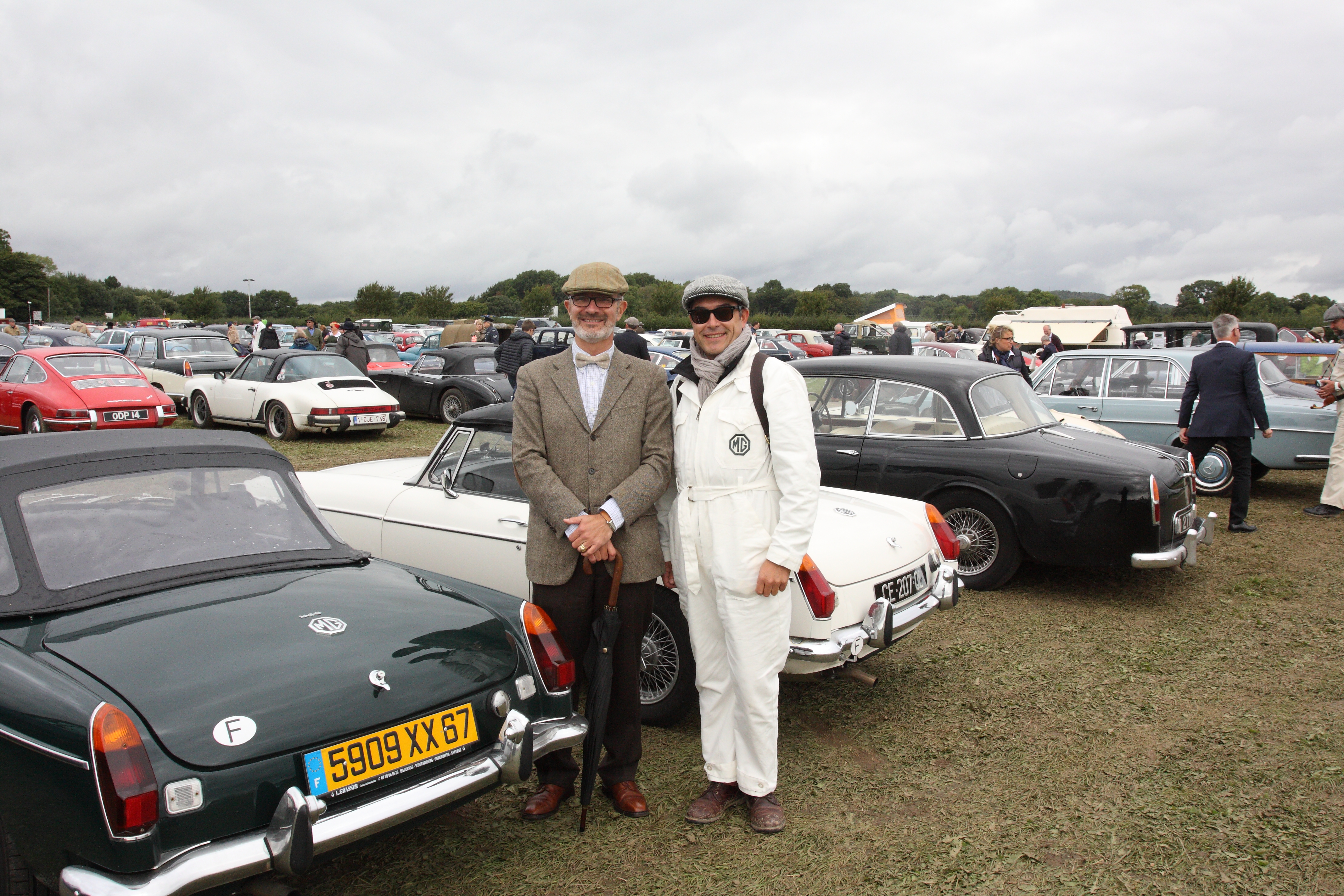 Dimanche 9 Septembre. Le temps est très beau mais nous savons que cela doit se couvrir. Nous devons repartir de Goodwood à 14h00 en prenant une marge pour être certains de ne pas manquer notre navette Eurotunnel à Folkestone. Nous avons prévus de dormir à Béthune, à environ une heure de Calais direction Reims. Nous retrouvons Dennis au petit déjeuner et lui restituons son badge du GRRC et ses accès aux paddocks tout en le remerciant chaleureusement. Dennis est costumé en officier de la RAF de la Second Guerre mondiale et son épouse Mary arbore un style « années 40 » très authentique. Nous faisons les niveaux, il me faut rajouter environ ½ litre, rien d’anormal. J’ai remplacé mon panama par une casquette à carreaux et mon blazer par la veste en tweed. Cela fait plus couleur locale. Puis nous prenons congés de nos hôtes ainsi que de Dennis et Mary à qui nous promettons de revenir un jour !
