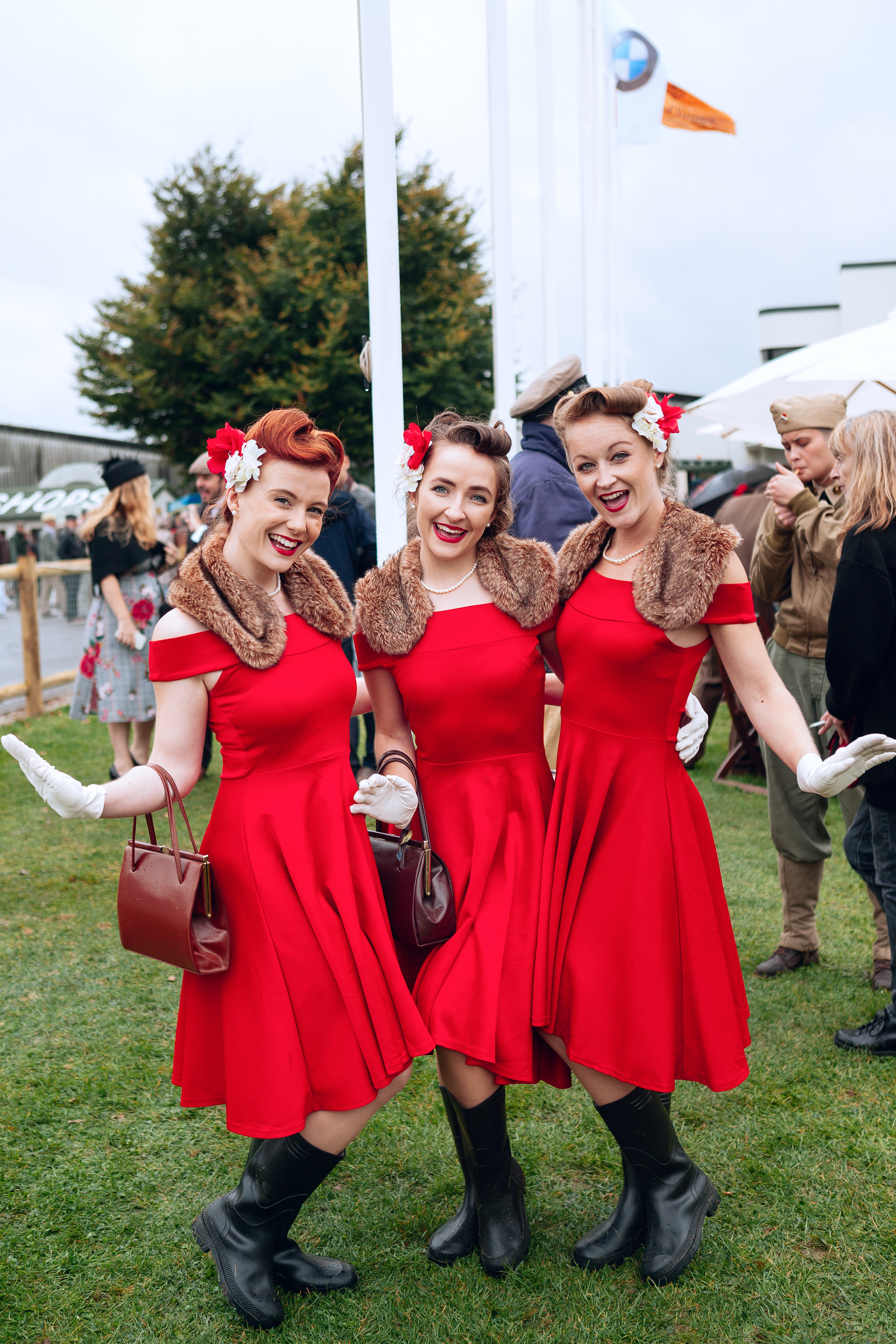 Le plein fait nous repartons pour Goodwood. La magie opère toujours, l’ambiance est encore au rendez-vous même si le temps se couvre. Nous profitons de nos dernières courses et faisons un dernier tour des stands : passage au stand SU obligé, ainsi qu’une multitude de boutiques éphémères qui vendent des vêtements, chaussures, gants, casquettes ainsi que des accessoires aux couleurs de la GULF ou griffés Aston Martin Racing. Nous visitons également dans le hall une exposition temporaire TWR avec de jolies filles au look seventies et retournons à reculons vers nos voitures… car il nous faut déjà prendre le chemin du retour. Ron nous avait conseillé de faire attention à Brighton : il y a une manifestation de motards et on attend 15.000 motards sur les routes. Effectivement ça peut devenir gênant. Après une étude de la carte et une programmation des GPS vers Hastings, nous quittons Goodwood…