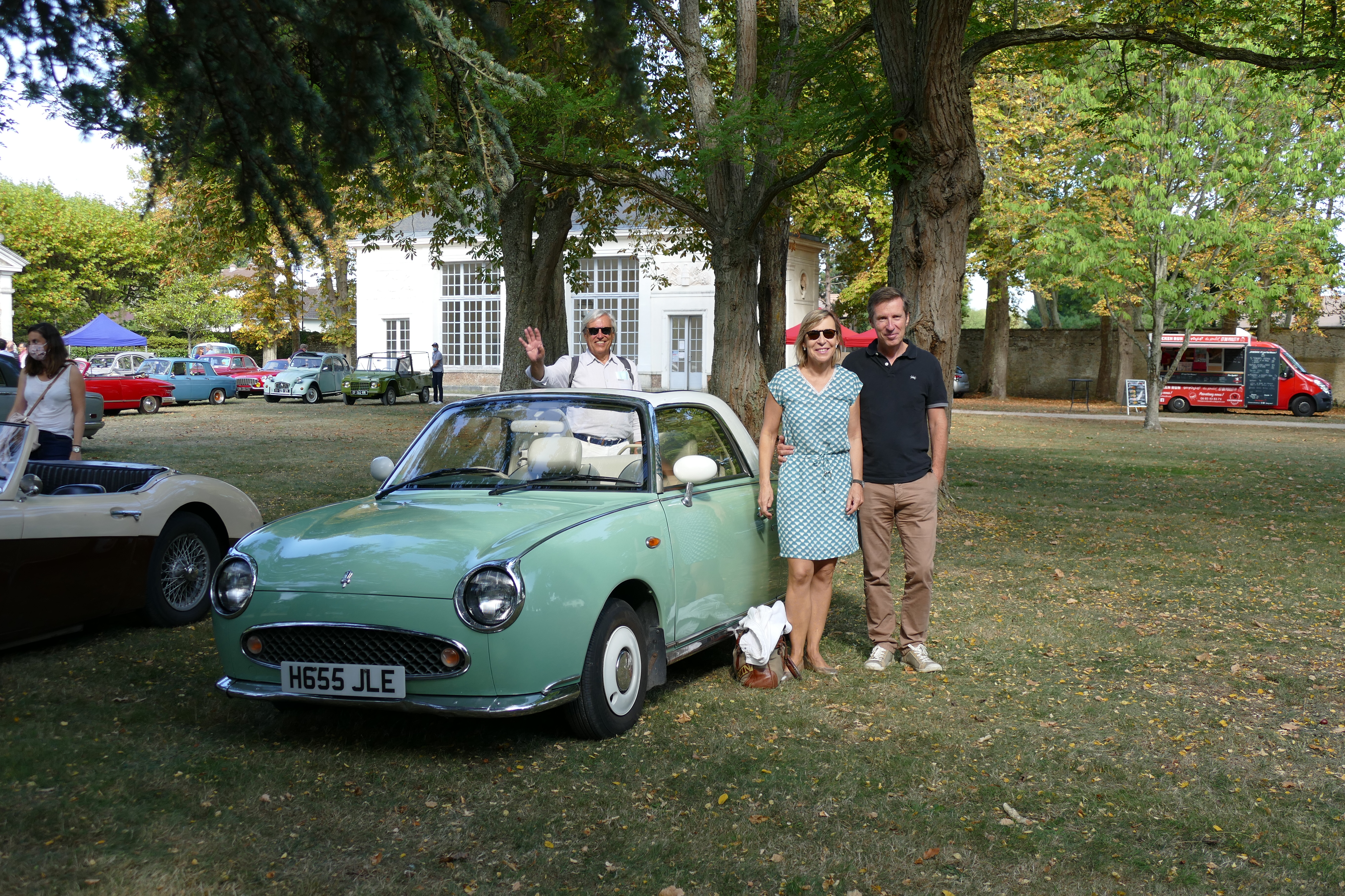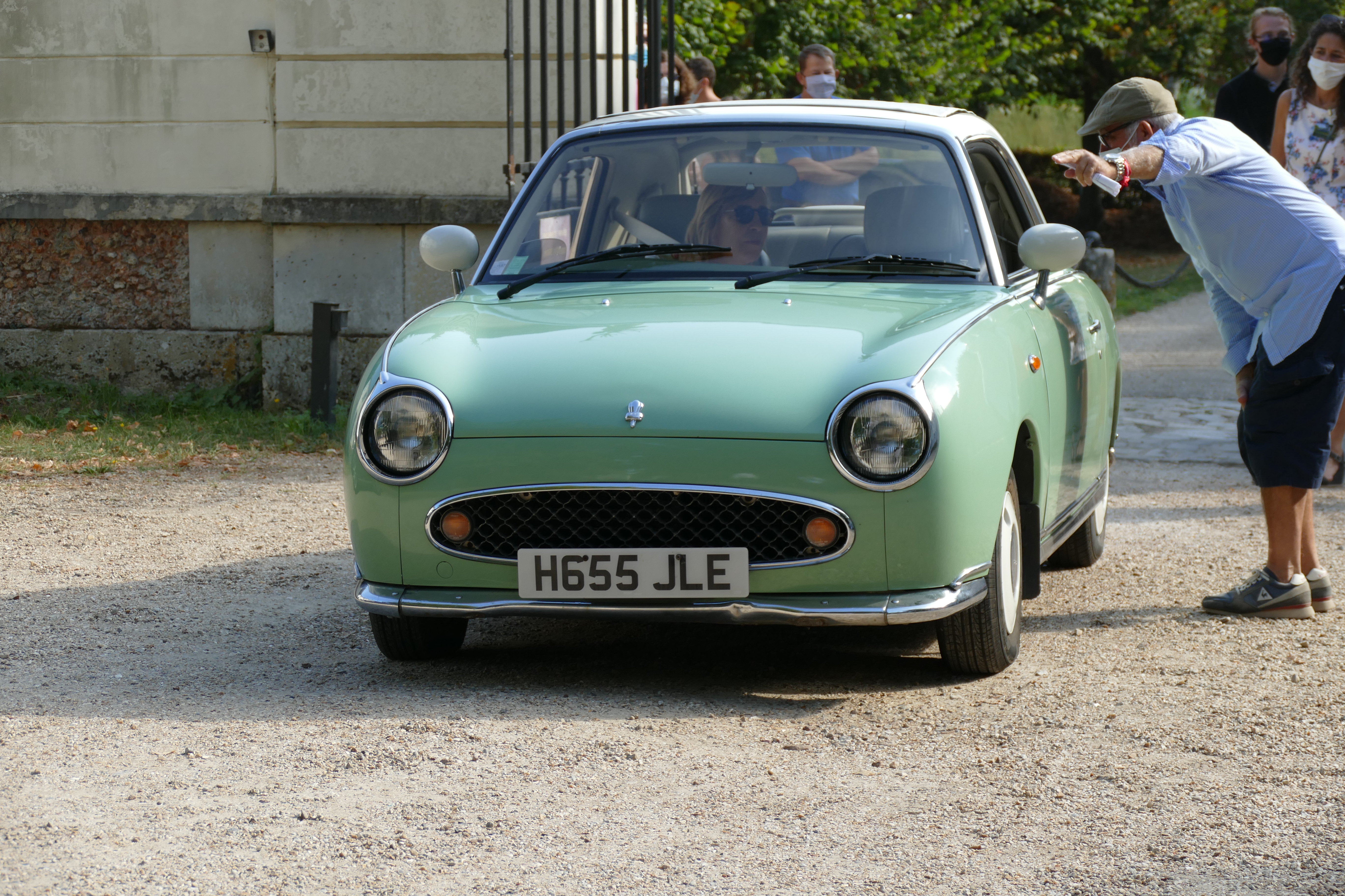 Plus près de nous, une Nissan Figaro conduite par Madame, s'il vous plaît, avec la robe assortie à la couleur de l'auto, et qui avoue avoir bien du mal à la prêter à son mari. Elle nous ramène à celle que nous avait présenté Aurélien, venu d'Annemasse souvenez vous . D'ailleurs l'heureuse propriétaire du bonbon japonais, qu'avec la célébration du trentenaire des véhicules de la Pikes Factory, une foultitude de manifestations auraient lieu en 2021 en grande Bretagne, si nous parvenons à venir à bout du vilain covid.