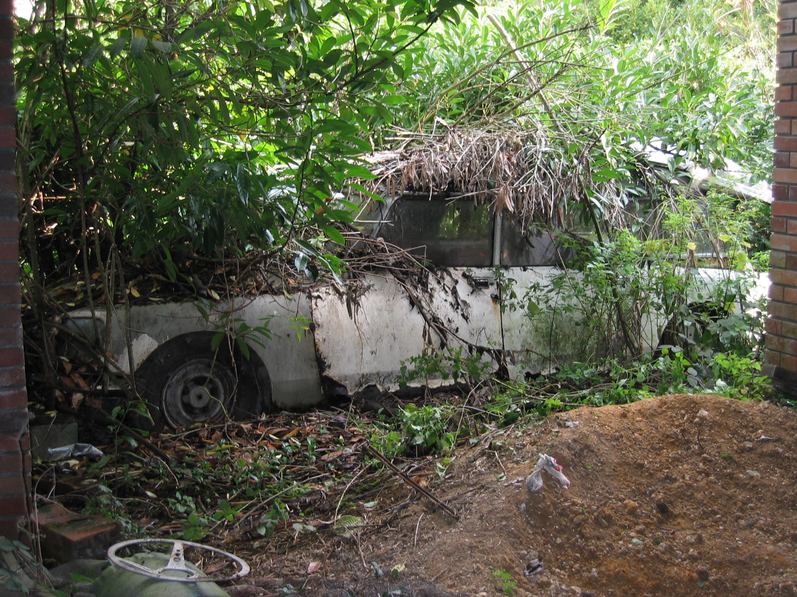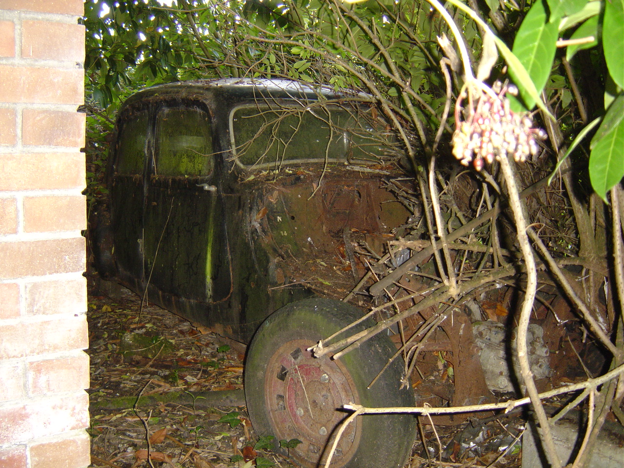 Et là sur le côté sous les buissons on peut pas creuser ? Pas con tiens... Ah non, y’a une épave de Traction large d’environ 1939 avec ses jantes pilotes rouge qui joue à cache-cache... Trouvée ! Les sourires se figent un peu et l’excitation retombe doucement... Un peu comme si tu te prenais d’un coup un poids sur les épaules... Et le coup de grâce arrive avec Thierry, le carrossier de la bande, qui explique que si on doit tirer le break pour le sortir, il est tellement mûr qu’il va casser en deux et que l’on va se retrouver avec l’arrière posé dans la rue (et là t’en fais quoi de ce morceau qui peut plus bouger vu qu’il manque les roues avant) et l’avant qui bloque toujours l’entrée en étant posé sur le plancher et donc totalement immobile... Surtout que tu peux même pas le pousser de force vers le fond, vu que tu viens de découvrir l'épave de 11 large contre son nez... Et bim un poids en plus sur les épaules...