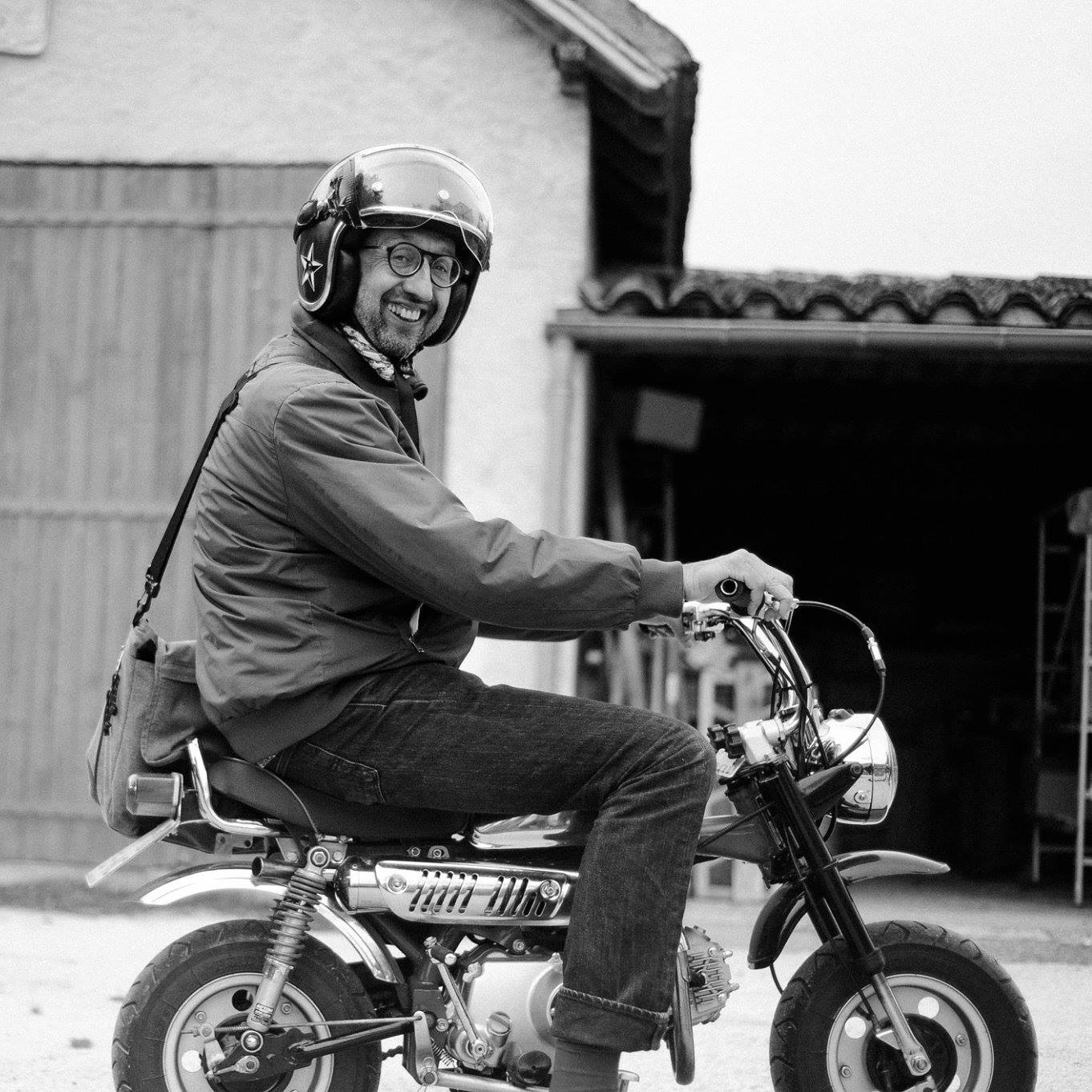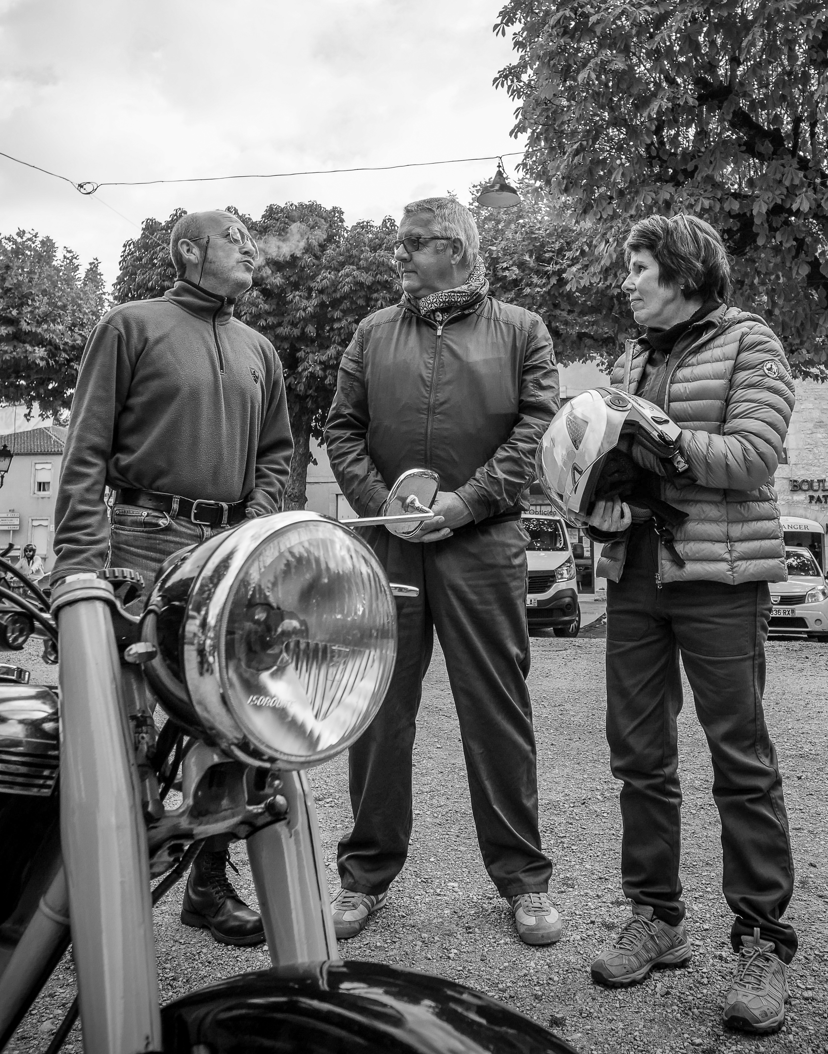 Puis, on part en convoi. Jean-Claude (long et mince) sur son Monkey ressemble à un flamand rose sur un vélo de clown…