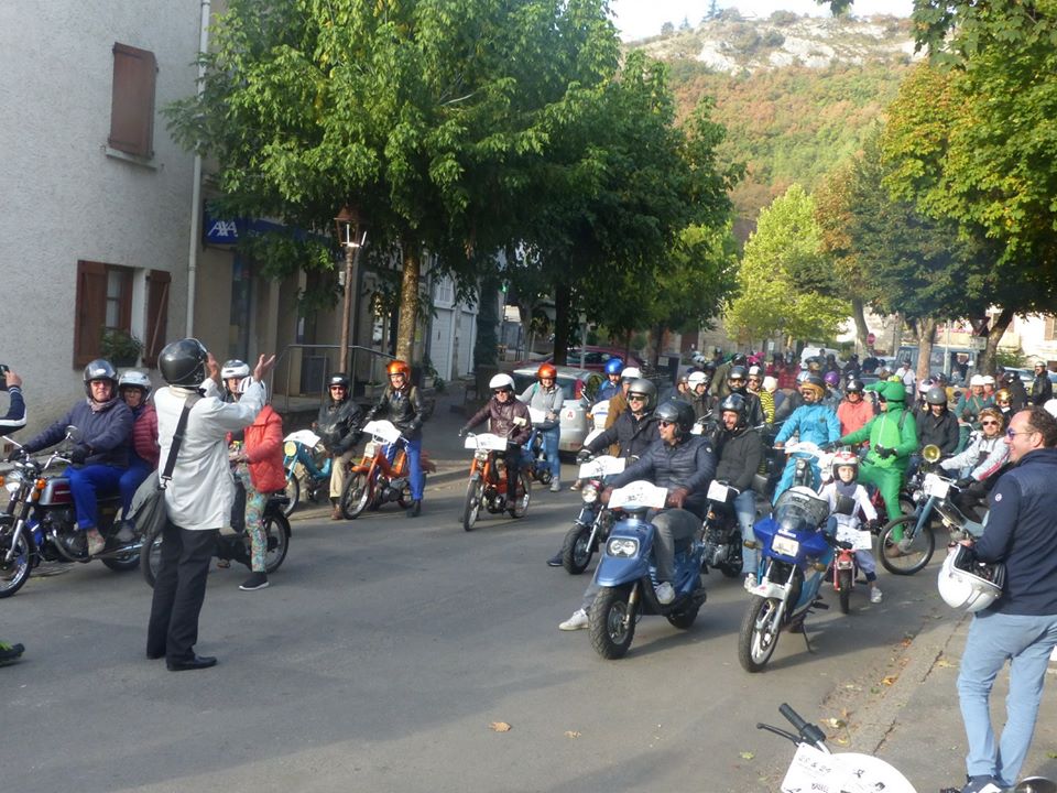 80 pétrolettes qui démarrent, ça fait du barouf et ça sent bon le deux temps (et même le trois temps pour certaines…)