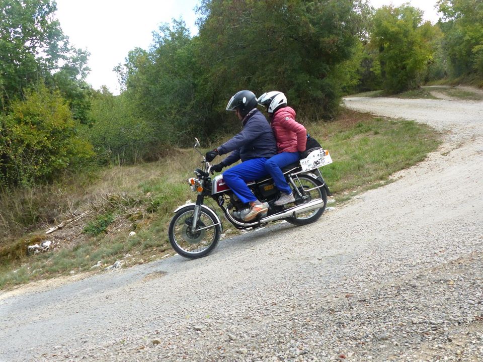 En un mot, c’est une balade à mobylette autour de Cajarc. Bon… nous le faisons en 125, puisque nous sommes deux, mais c’est un détail puisque l’important c’est de rouler doucement et de prendre du plaisir avec des amis.