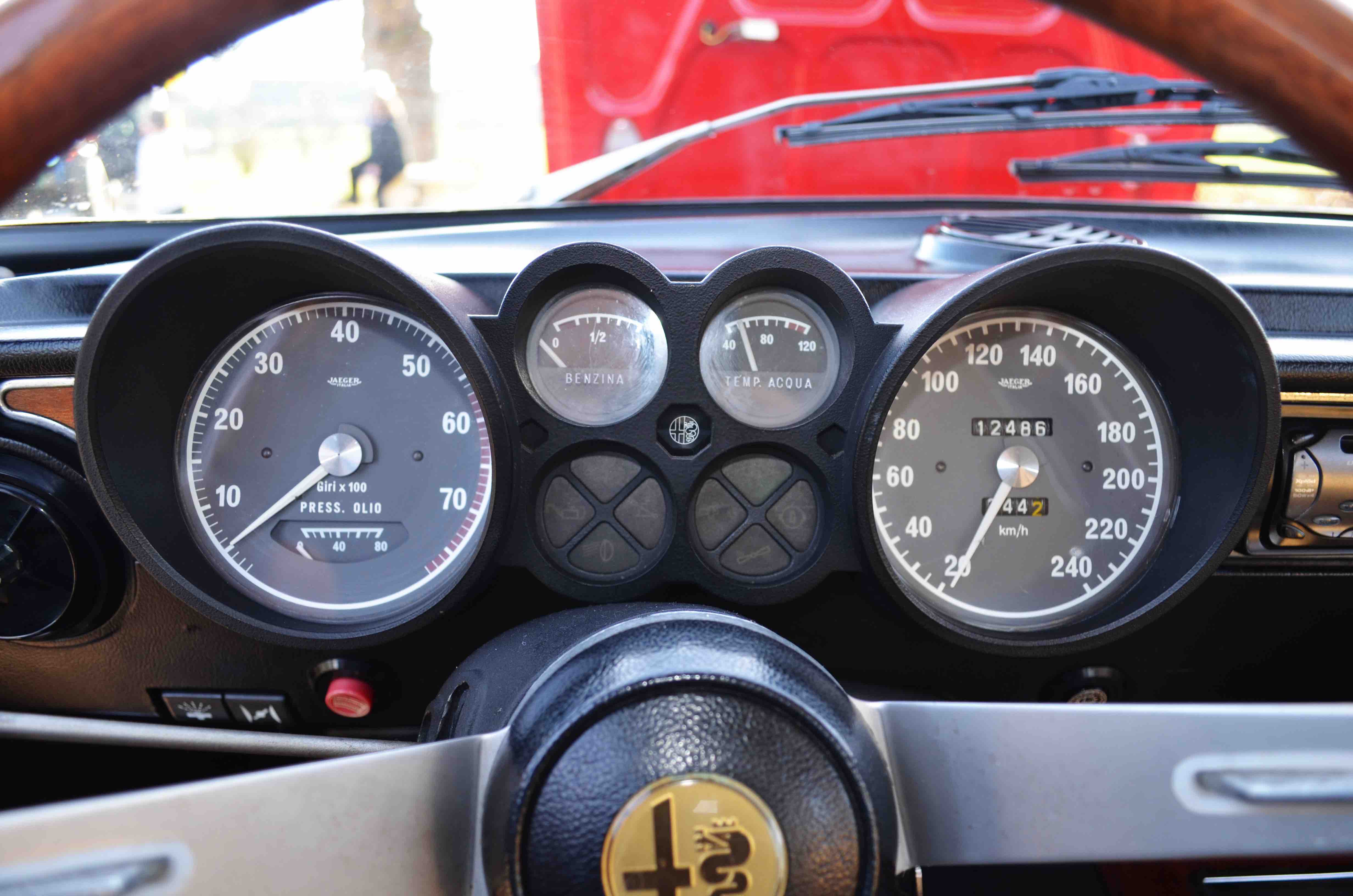Bien sûr, une Alfa Romeo c'est d'abord un moteur ; un superbe bloc tout en alliage léger à double arbre à cames en tête qui a motorisé toutes les Alfa pendant 30 ans. Gavé par une double paire de carburateurs d'un diamètre de 40, il ne manque pas de hargne et surtout, de ses entrailles, sourd une superbe sonorité métallique reconnaissable entre mille. Une belle mécanique qui a délivré plus de 200 ch sur les versions course GTam à ailes ventrues qui étaient spectaculaires à voir évoluer en circuit où elles levaient leur roue avant extérieure.