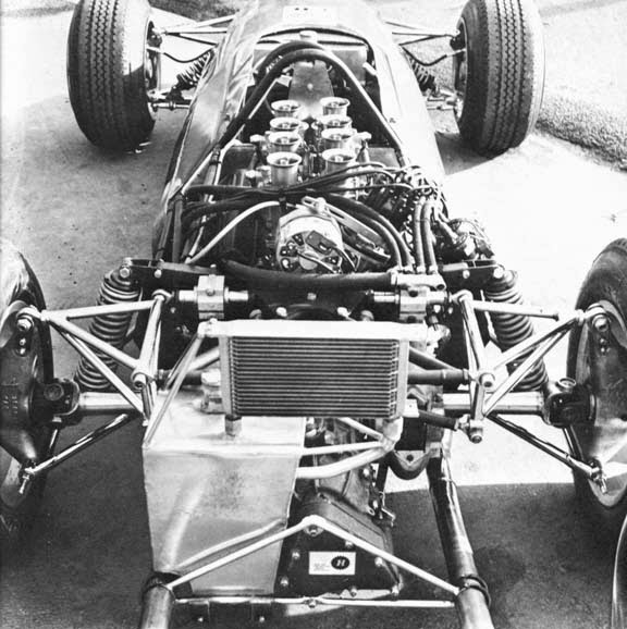 Le V8 se caractérisait par sa compacité et sa (trop grande) simplicité - On aperçoit sur cette photo, le dessin particulier des triangles de suspension