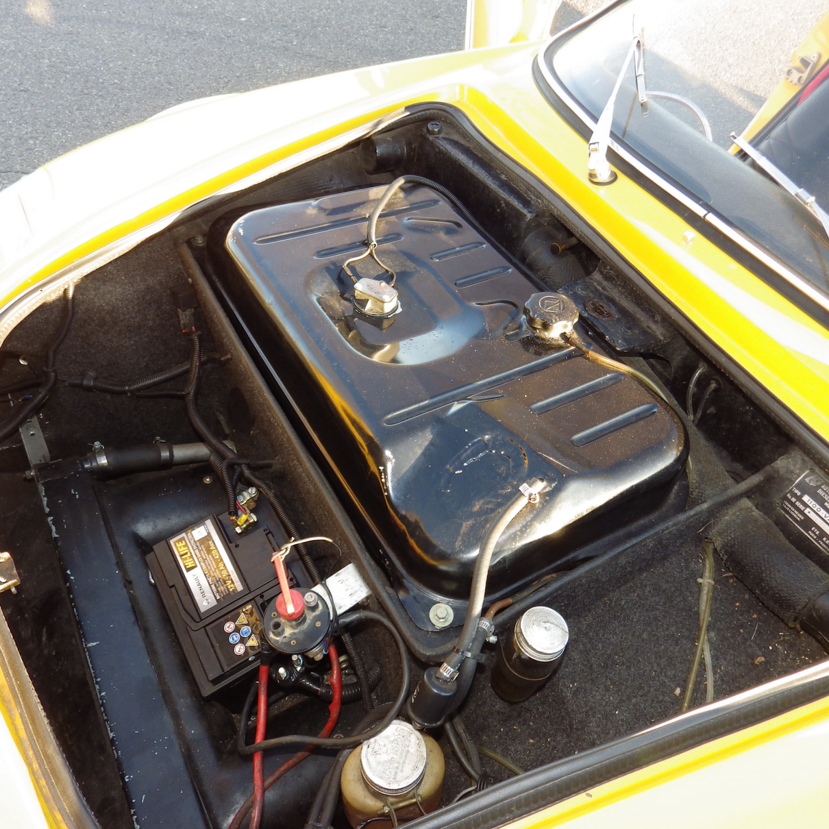 le capot comprend le réservoir avant de 38 litres de la R8, la batterie et le radiateur avant. Pas de place pour la roue de secours !
