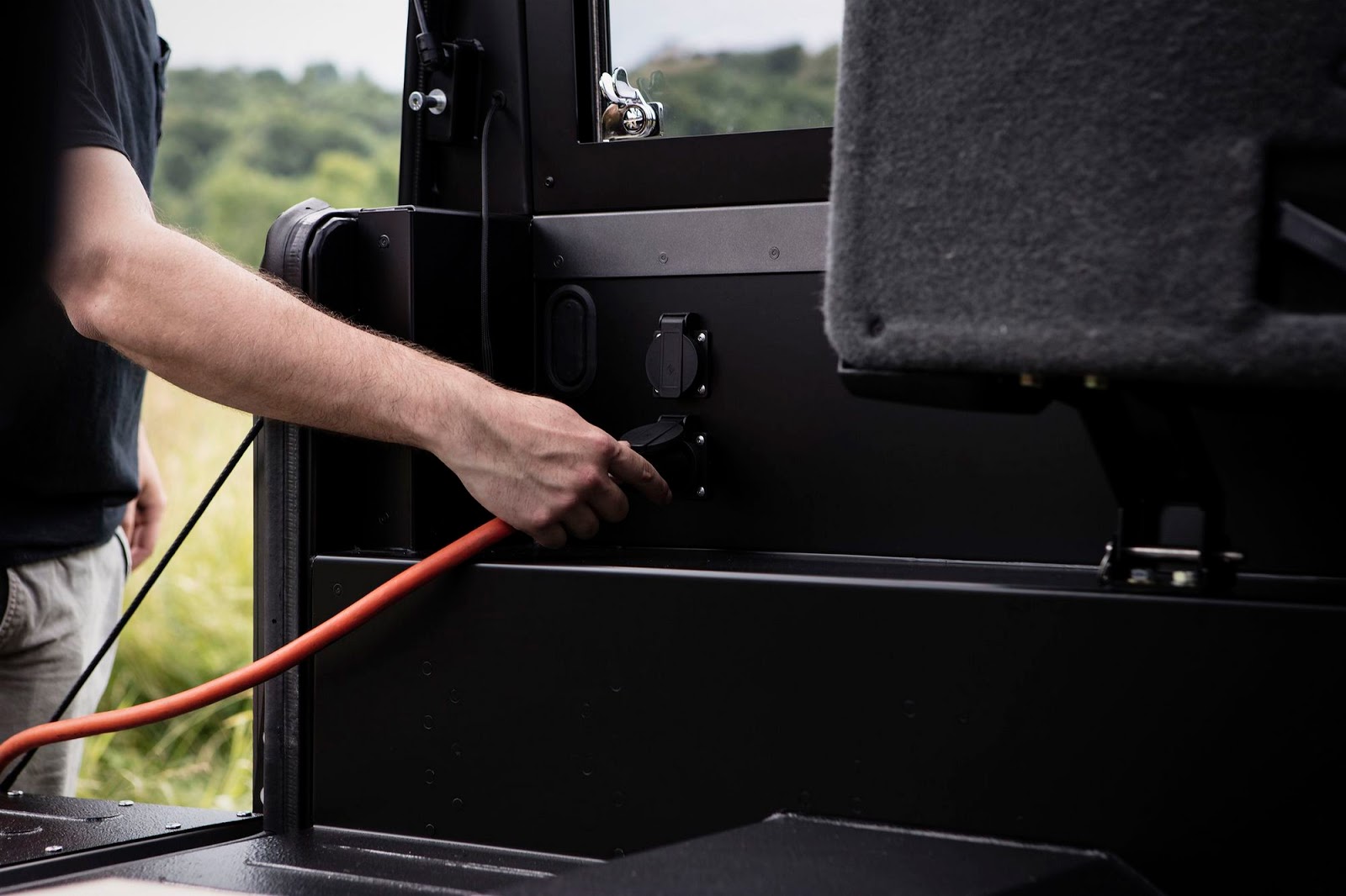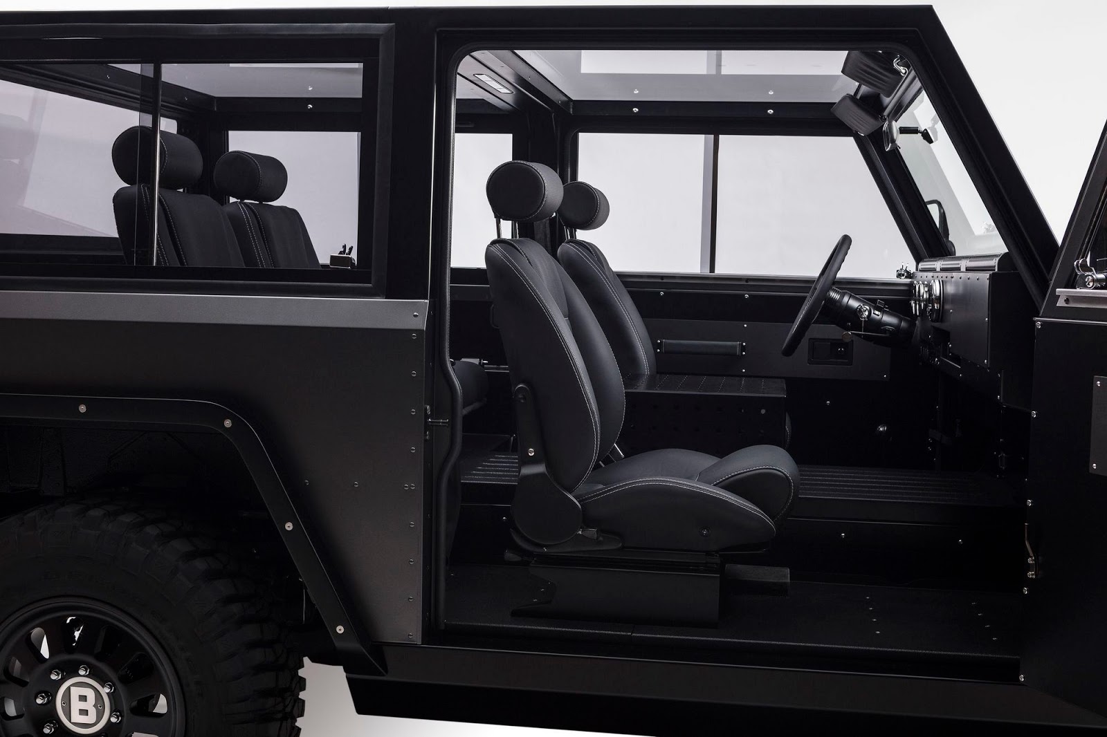 POA craque pour le Bollinger B1 ( Bollinger Motors) 4X4 électrique américain en cours d'homologation. Un retour au source de la simplicité d'une folle élégance- 3,81 m de long pour 1,94 m de large, 1 769 kg -capacité de remorquage jusqu’à 2 767 kg. châssis aluminium - garde au sol de 39 centimètres- pneumatiques Mud Terrain LT285/70/R17, deux moteurs – un par essieu – totalisant 270 kW de puissance (360 chevaux) et 640 Nm de couple. 2configurations de batteries sont proposées par le constructeur avec une autonomie respective de 200 et 320 kilomètres