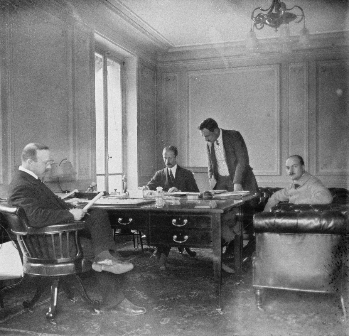 André Citroën et ses collaborateurs notamment son directeur général et ami Georges-Marie Haardt au centre dans son confortable bureau du quai de Javel