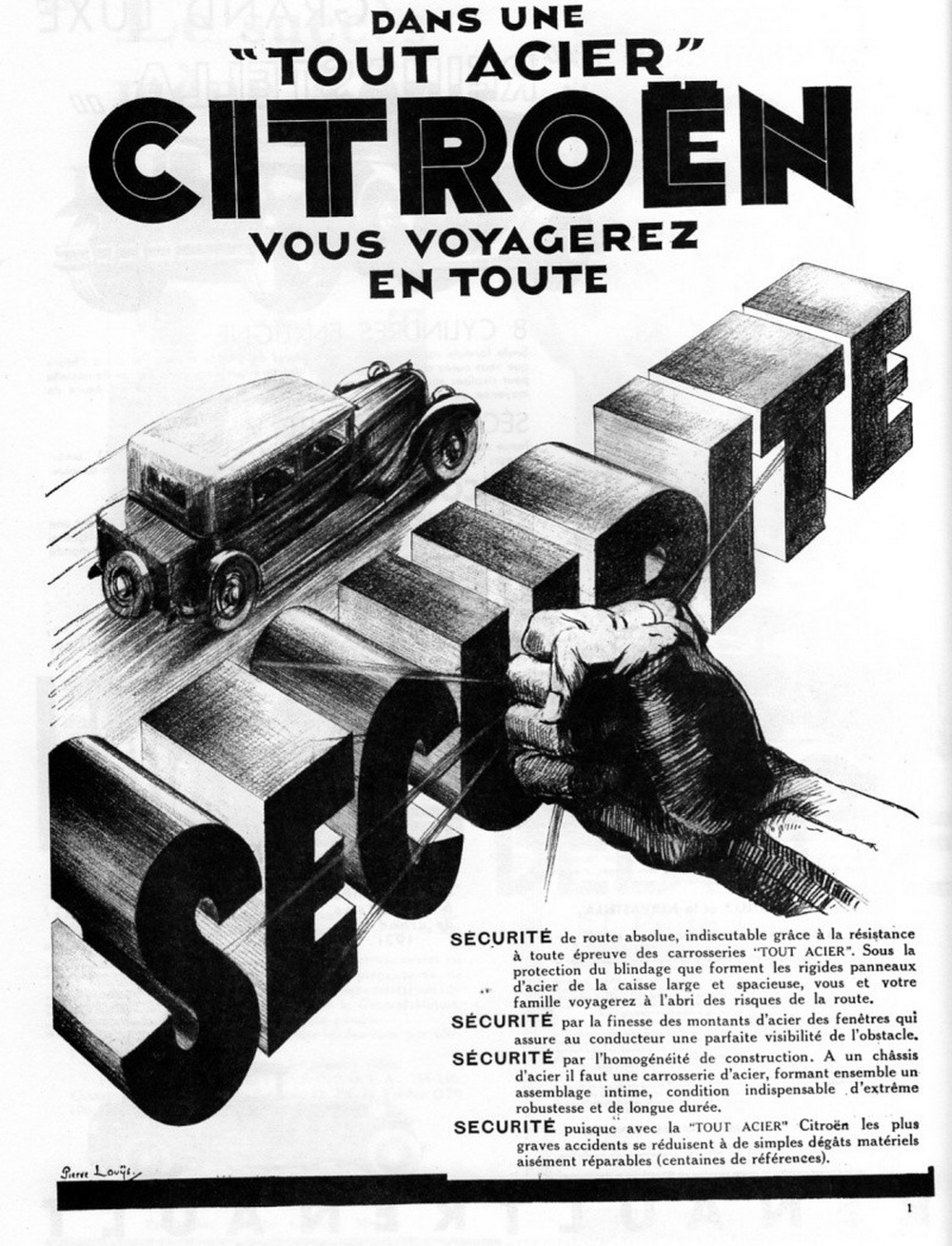 Publicité sur la résistance de la caisse tout acier démocratisée par Citroën