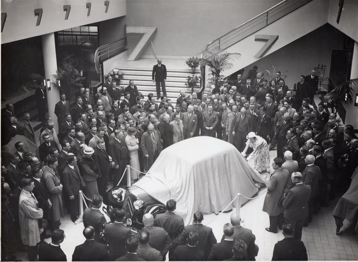 En 1934, le patron sur les marches de l'escalier va faire découvrir la révolutionnaire 7 CV appelée plus tard Traction Avant