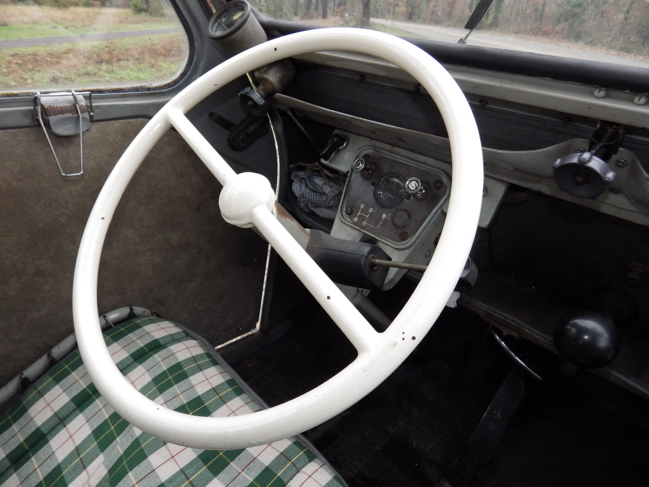 Antoine Demetz, le grand spécialiste de la 2 CV et auteur de livres notamment sur cette voiture, remarquera que la peinture du volant n'est pas d'origine !