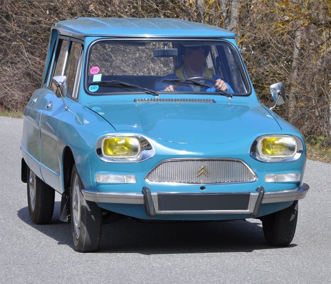Après la Dauphine rouge, Papy reçu de la Mairie une Ami 8 break bleue Danube. Il dirigeait le Syndicat d’Initiative local, un parent de l’Office de Tourisme.