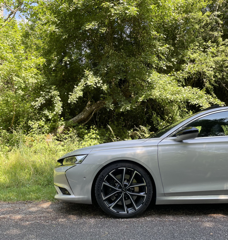 Après 1H30 de pare-chocs contre pare-chocs, la route se fluidifie et nous pouvons enfin exploiter le potentiel de cette DS 9. Dès la première barrière de péage passée, j’écrase l'accélérateur : les 360 chevaux vous propulsent comme une balle jusqu’à 130 km/h, mais toujours avec une douceur typique des produits DS. La lecture de la fiche technique s’impose alors : le 0 à 100 km/h est donné pour 5,6 s, un chiffre de voiture de sport qui semble tout à fait réaliste. Pour afficher de telles performances, la DS 9 fait appel au bien connu 1,6 l PureTech de 200 ch, associé à deux moteurs électriques de 110 ch et 113 ch, le tout géré par la boîte EAT8, également bien connue des productions Stellantis. Pour ceux qui n'auraient pas suivi, Il s’agit de la même motorisation que la redoutable Peugeot 508 PSE.