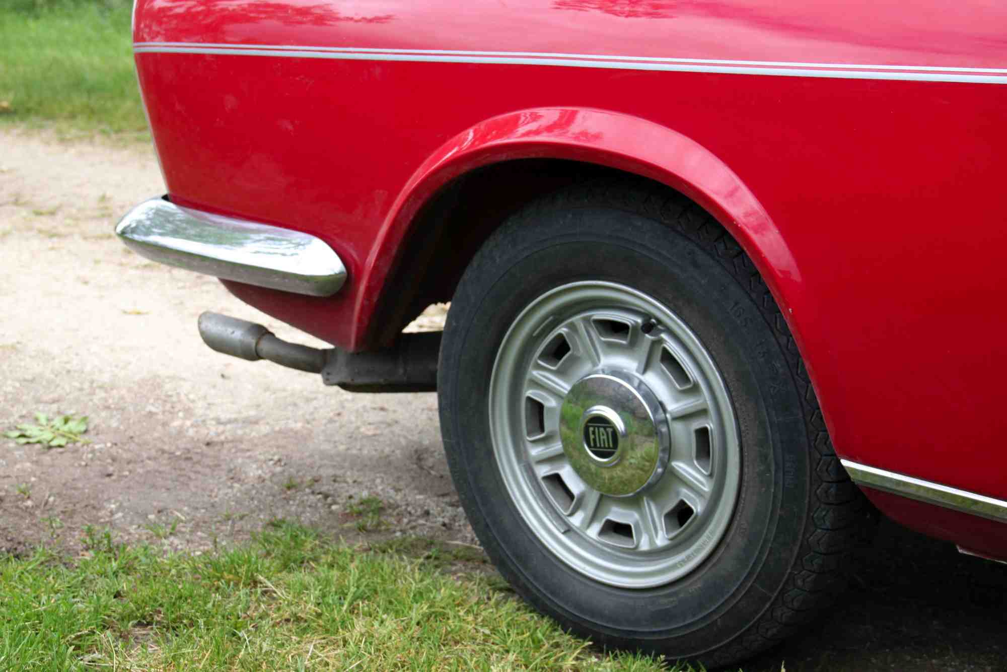 Les jantes de seulement 13 pouces en alliage léger étaient optionnelles. La Fiat 124 coûtait 20 000 francs en 1970 soit sensiblement 35/40 000 € actuels