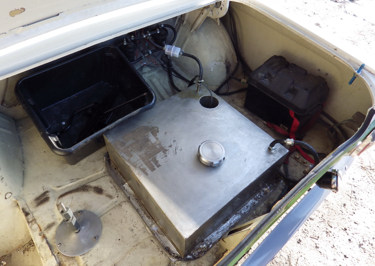 Réservoir de sécurité, batterie montée à l'arrière, on s'éloigne de la voiture de série
