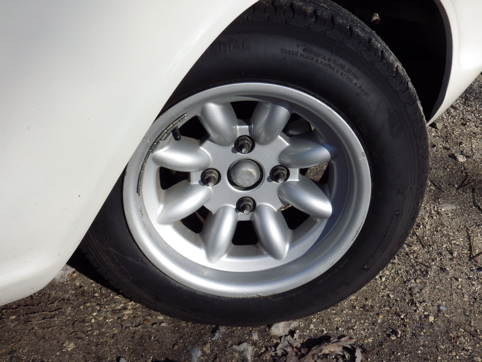 Belles jantes Minilite en alliage léger élargie de 13 pouces remplacent celles en tôle de série chaussées de pneus Avon en 175 de large