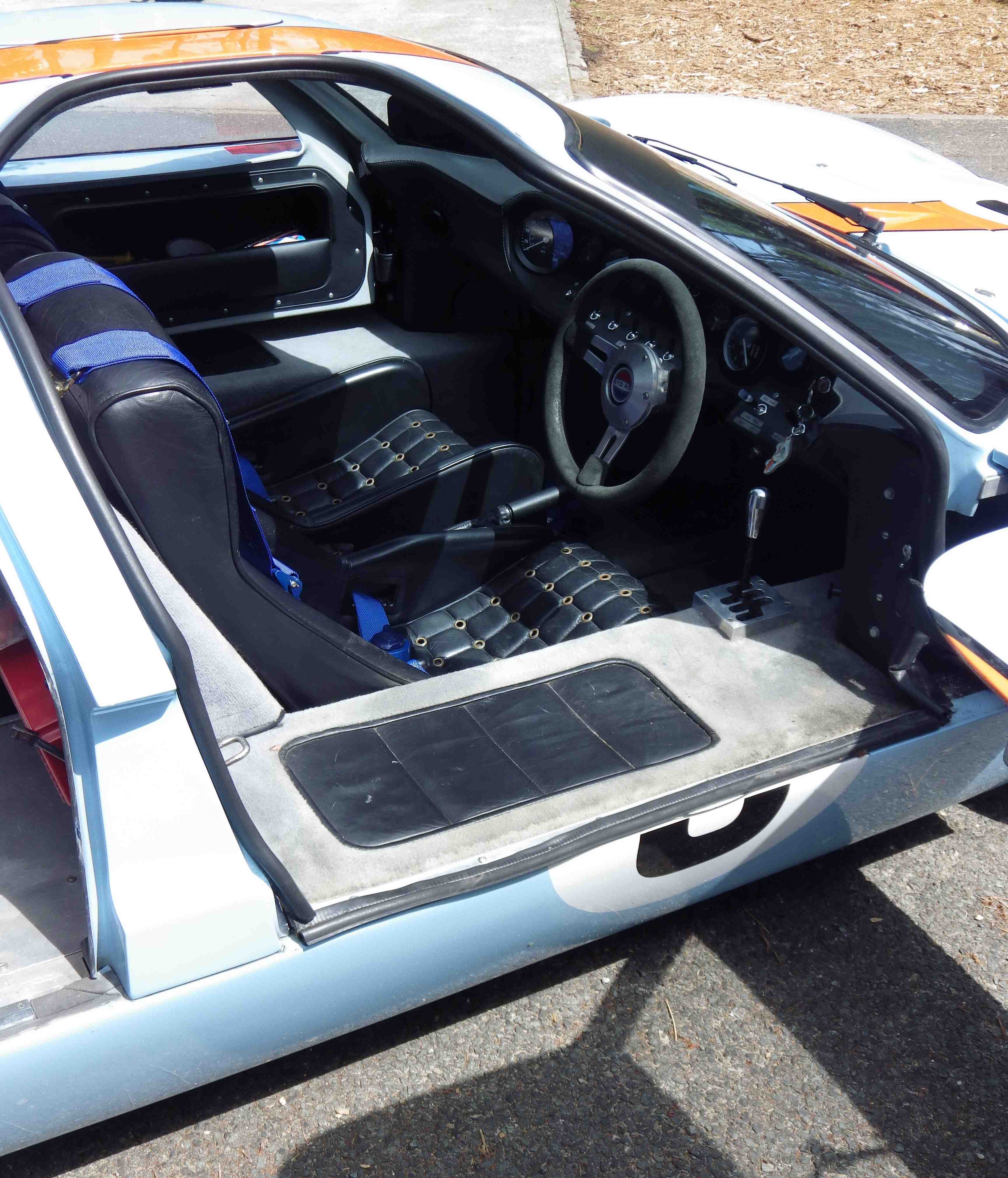 A cause de ces prix surréalistes, Ford a relancé la Ford GT en 2005 qui était l’évolution moderne de la GT40 sous le même aspect mais en plus gros. Mais ce n’était pas la vraie GT40 des sixties. C’est ce qui explique qu’elle est l’une des voitures les plus répliquées au monde. Nous vous mettons à l’aise, celle de Jacky Morel est une réplique. Si elle a les couleurs du pétrolier Gulf des modèles 68/69, il s’agit plutôt de la réplique du modèle 66/67 MK1 aux ailes arrière étroites. Mais il y a réplique et répliques. Des dizaines de constructeurs dans le monde proposent des GT40 plus ou moins fidèles. La plus proche de l’originale est le modèle Superformance fabriqué depuis 20 ans en Afrique du Sud par Hi-Tech Automotive proche à 90%, parfois plus de… de l’originale. Ce qui permet parfois d‘en voir considérées comme des vraie ! Celle de Jacky fait partie des plus fidèles fabriquée par la société GTD.