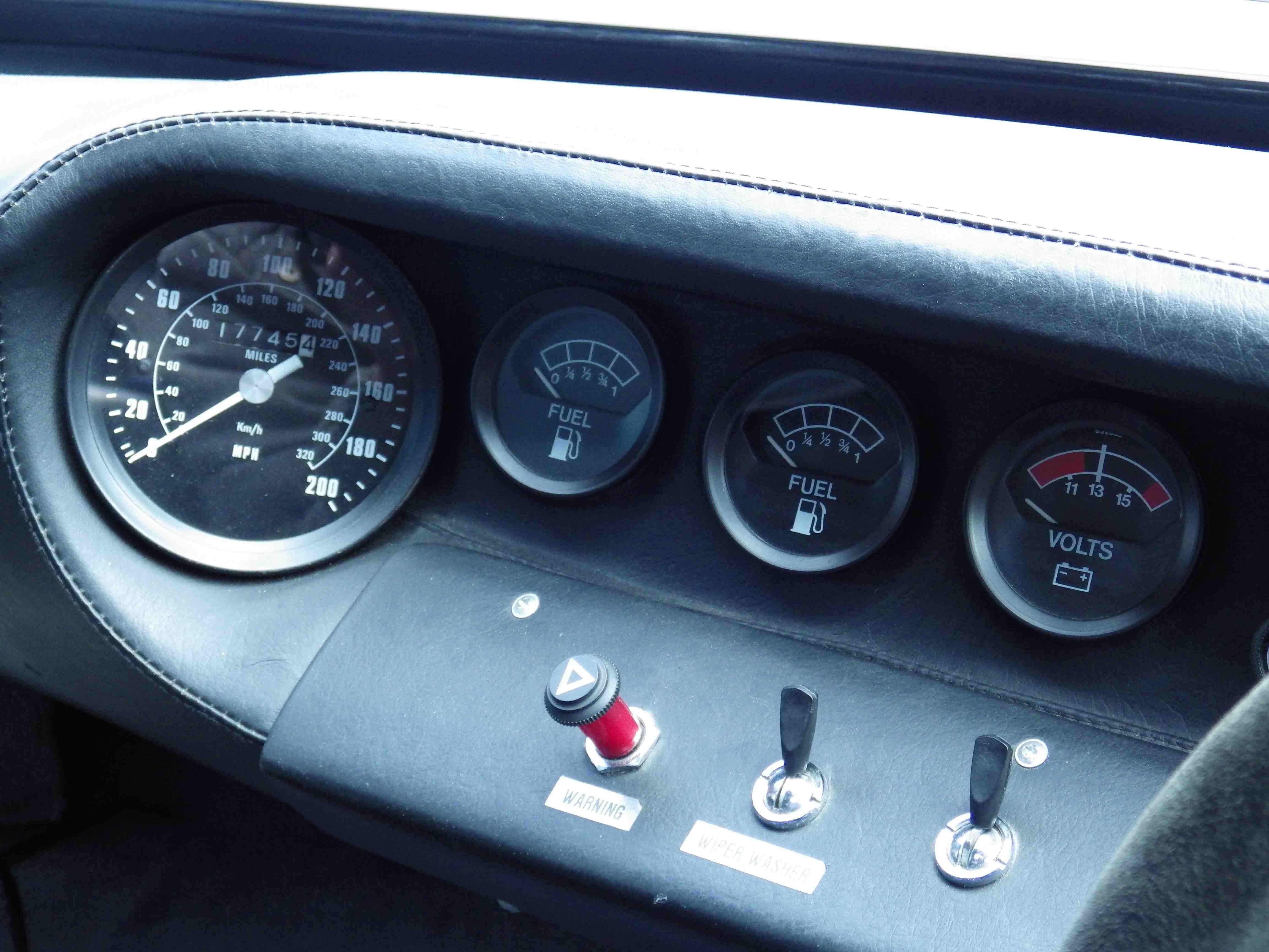 Le tachymètre est gradué jusqu’à 320 km/h. les dernières GT 40 5 litres de 400 ch filaient à 300 km/h  contre 338 km/h pour les versions 7 litres 550 ch