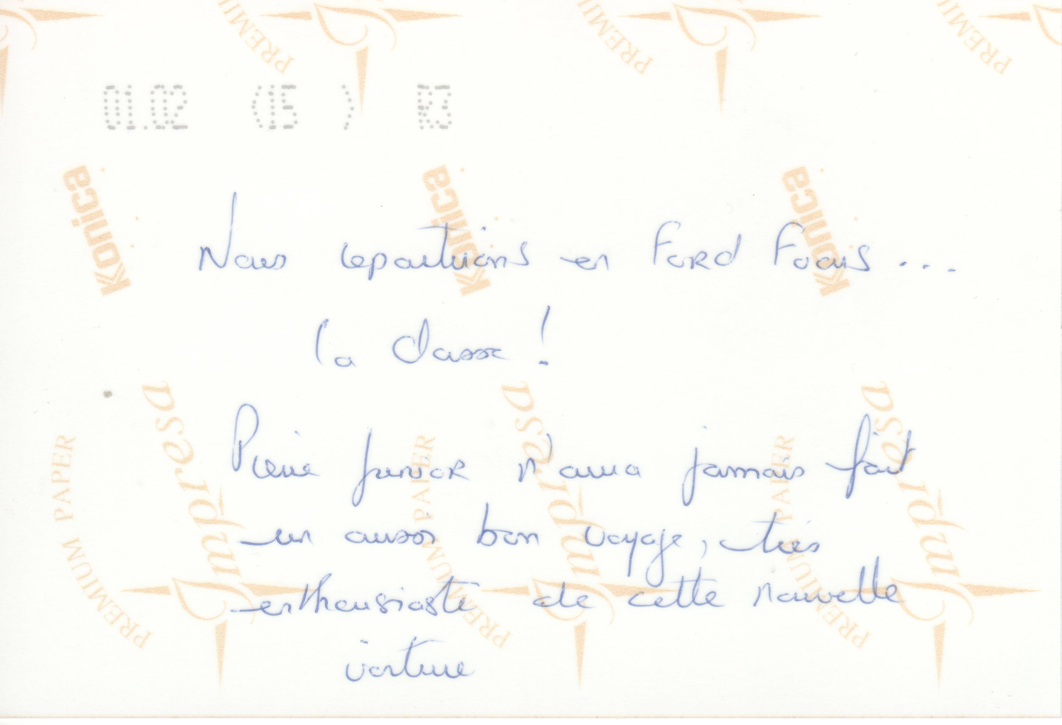 Mes parents ont des autos relativement âgées (La Chamade de 1991 et une Supercinq Five, plus âgée et en bout de course), et ils décident de racheter cette jolie Ford pour remplacer la vieille Sup’sup’.
