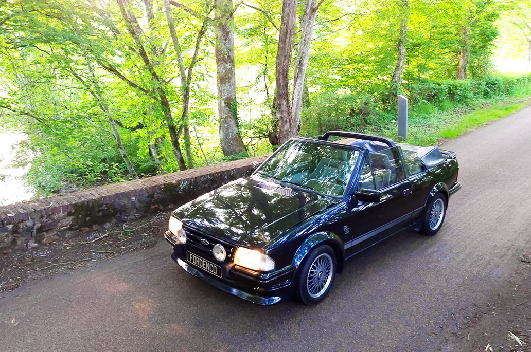 Par Patrice Vergès. La Ford Escort MK3 RS Turbo a existé seulement en version berline 2 portes. Passionné par les Ford, Sylvain a transformé son cabriolet XR3 en version RS Turbo avec une mécanique encore plus affutée.