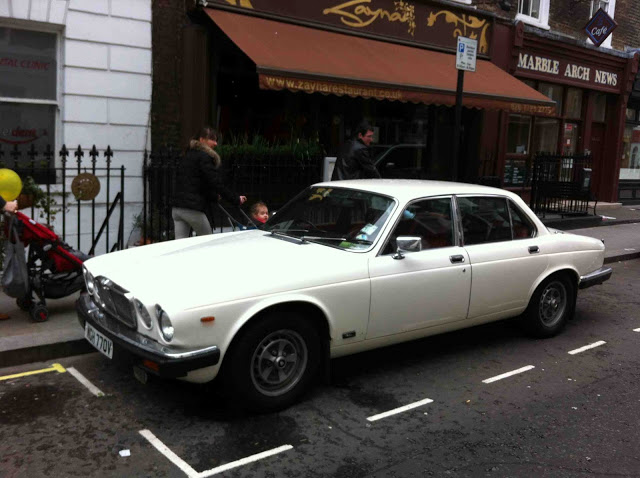 Un classique la Jaguar XJ série 3, mais ça le fait toujours, surtout en blanc intérieur rouge.