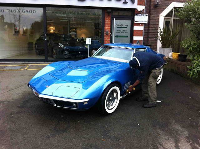 Une riquaine chez les english, oui mais admirez le travail de restauration et l'amour que porte le laveur à la Corvette qui semble tout droit sortir d'usine