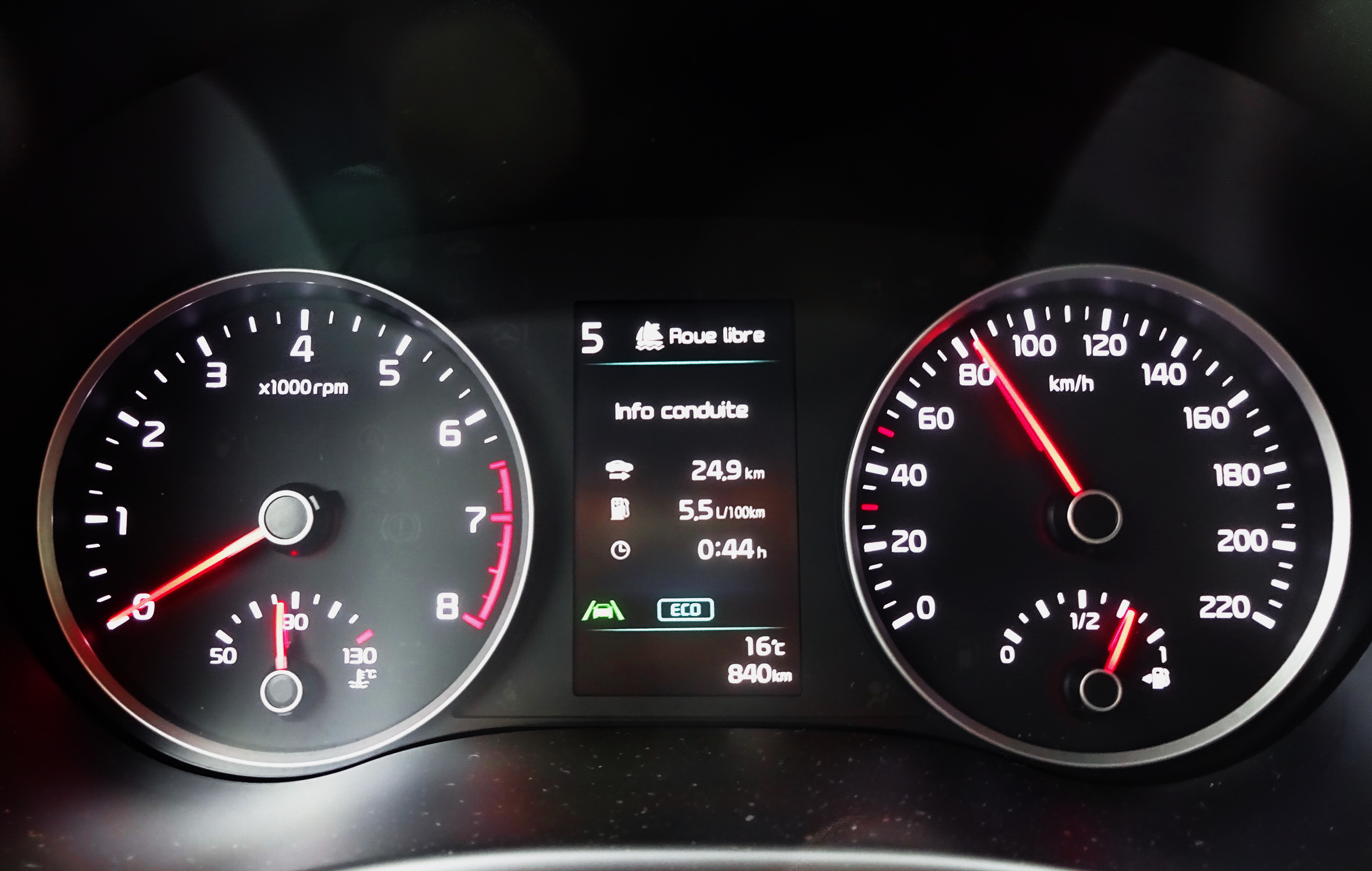 La fonction roue libre permet de réduire également la consommation de carburant qui était de 5,5 l quand cette photo a été prise