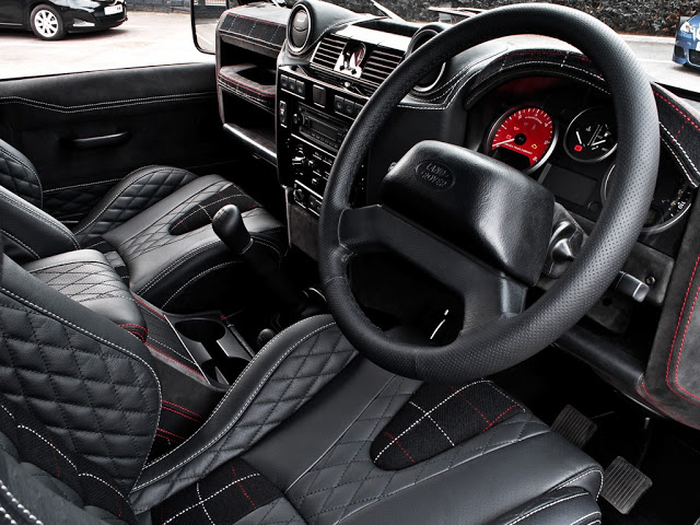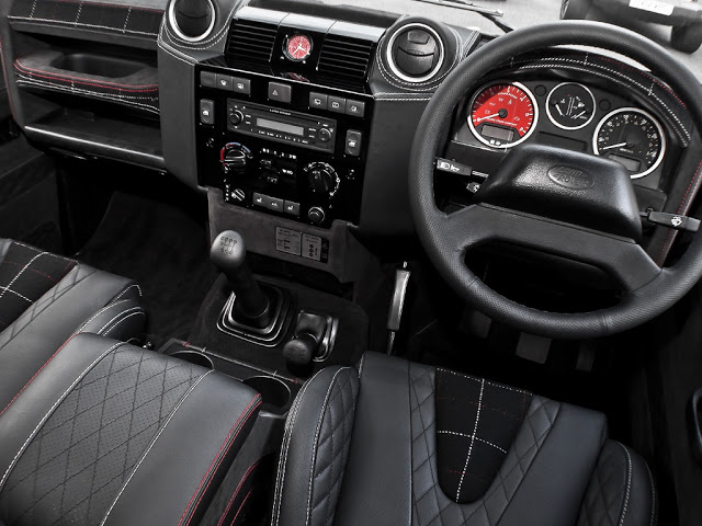 Peu connu chez nous, Harris Tweed, http://www.harristweed.org/, est une marque de vêtement archi british, reconnue notamment pour ses Tweed légendaires, tous issus de la plus fine laine écossaise. Bref, entre Rossebeef ils se comprennent et Land Rover a signé pour le Defender une série spéciale (encore) qui reprend des motifs Harris Tweed sur les fauteuils. Cela a une classe folle et les photos sont superbes. Comme le notais un petit observateur, il ne s'agit plus du Land Rover Defender, mais bien du Lord Defender. S'il ne devait rester qu'une seule voiture après la fin du monde, programmée je vous le rappelle par le Calendrier Maya pour le vendredi 21 décembre de cette année, ce serait ce Defender. Si nous perdurons malgré tout, j'en veux bien un sous le sapin de P.O.A.