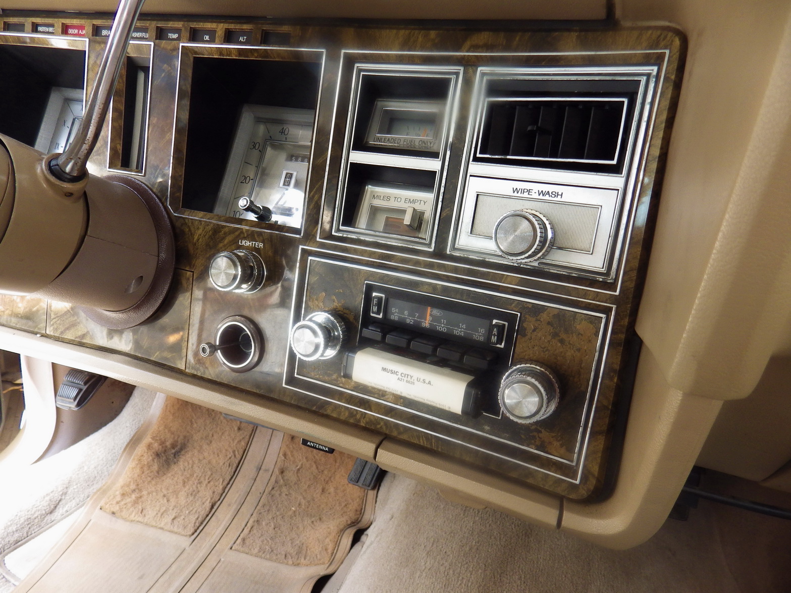 Deuxième remarque, on entend à peine le murmure du démesuré V8 de 7,5 litres de cylindrée. Victime des normes de pollution qui avait fait chuter drastiquement la puissance des américaines des années 70, il ne délivre plus que 208 chevaux du bout des lèvres contre 360 quelques années plus tôt. On roule sur le couple colossal et la boîte de vitesses automatique ne semble posséder qu'un unique rapport avec la 3eme tant il n'y a pas de besoin de rétrograder. Le confort se révèle surprenant autant au niveau des sièges tendus de cuir assez moelleux que de la suspension qui fait dans la mollesse malgré un essieu rigide à l'arrière mais toutefois sans se vautrer dans les virages.