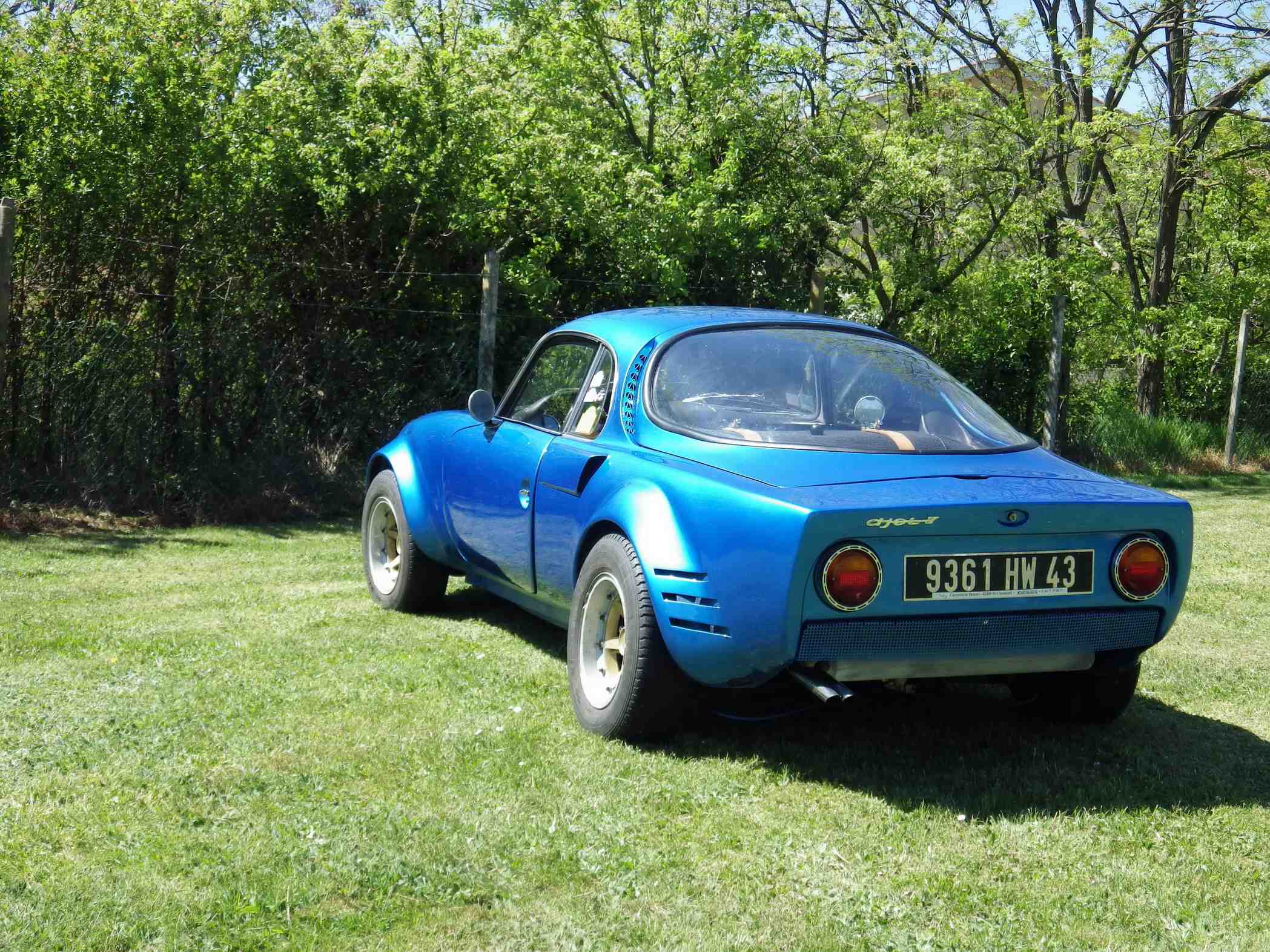 Avec 500 courses à son actif en tant qu’organisateur d’épreuves notamment dans la magnifique région du Forez, Pierre Douzet avait vu des Djet en course dans les années 70. S’il connaissait cette voiture, il n’était pas spécialement attiré par elle. Aujourd’hui, il ne l’échangerait pas contre deux barils de Berlinette. «Ce qui me séduit, c’est sa ligne, la beauté de son profil, la finesse de sa carrosserie, son originalité » explique ce tout jeune septuagénaire à l’allure d’adolescent. Face à nous, sur le fond vert de jardin, son Djet bleu métallisé qui semble avoir été sculpté par le vent semble minuscule avec ses 1,15 m de haut contre 1,50 m de large. Comment pouvait-on faire d’aussi petites voitures ?