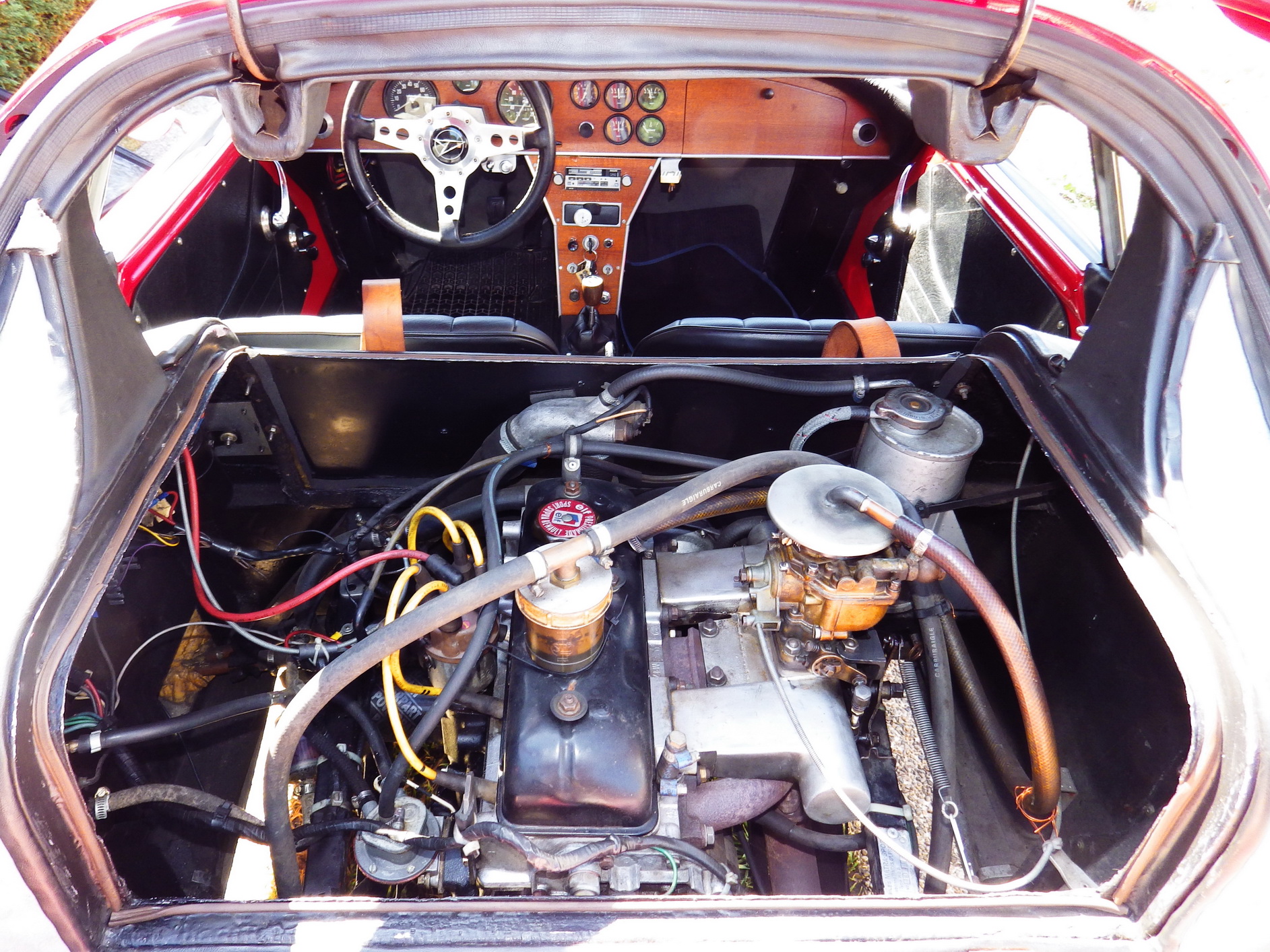 Le moteur en position centrale est monté dans l'habitacle. D'origine, il s'agissait d'un 1108 cm3 d'origine R8 remplacé par un 1300 cm3 plus puissant