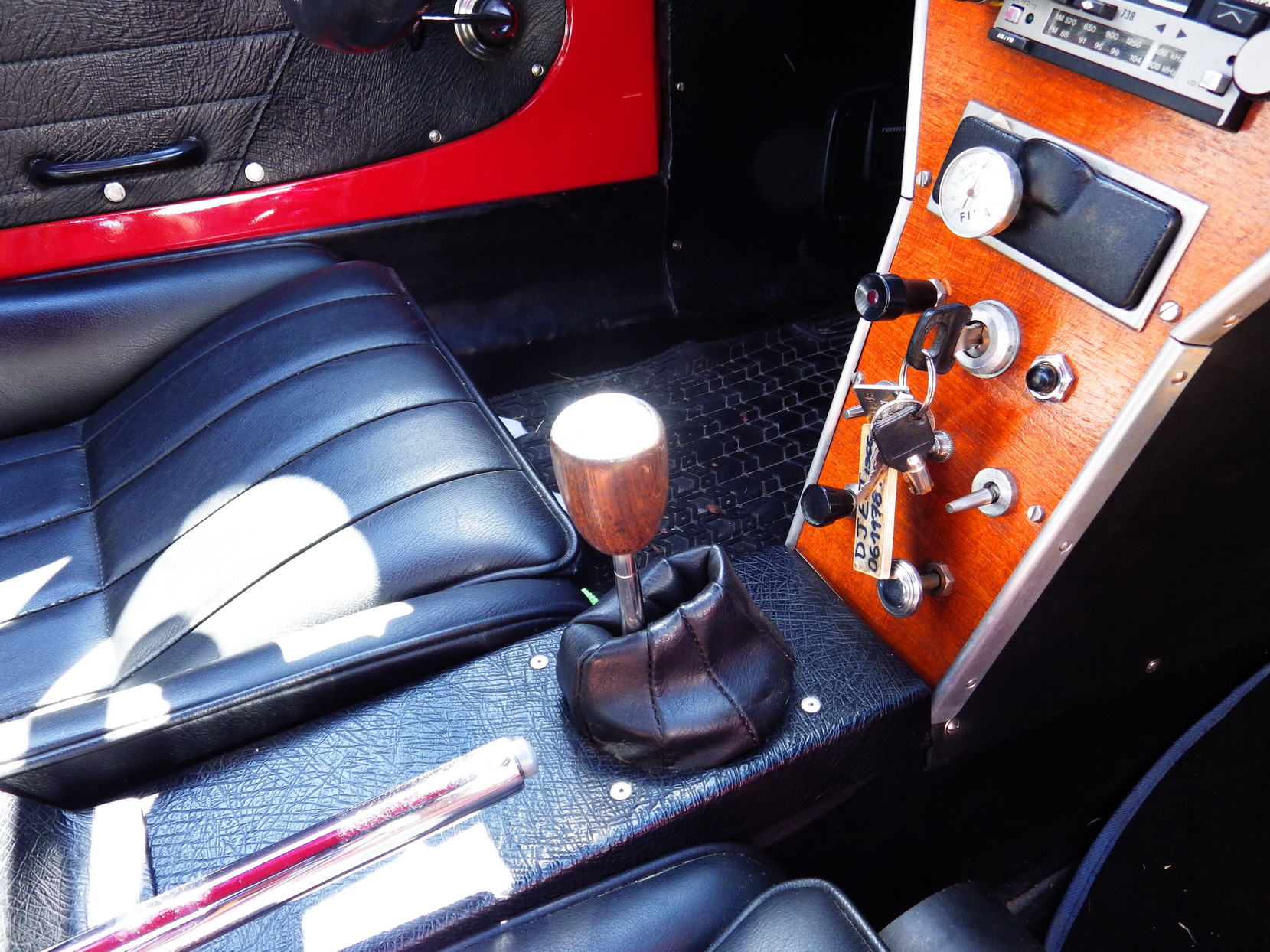 Pendant près de deux ans, Bernard remonte son Djet. Il déniche un moteur 1300 cm3 plus puissant trouvé sur une Estafette qu'il prépare, refabrique un échappement spécifique, refait la suspension montée..... à l'envers à l'avant, déniche toutes les pièces spécifiques introuvables de l'intérieur, refait faire les sièges, fabrique un tableau de bord en teck, change le pare-brise (celui de l'Alfa SS), découvre une rare bulle arrière, refait faire tout le polyester en renforçant la caisse qu'il fait repeindre rouge Ferrari.