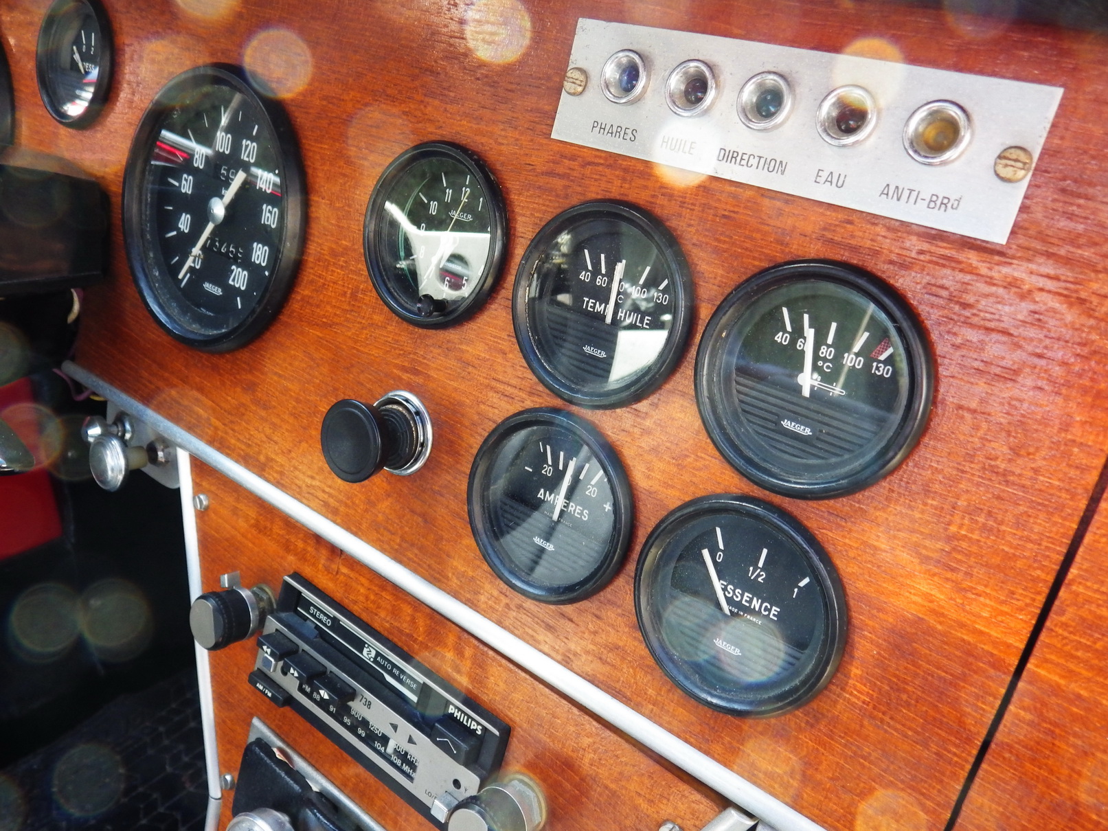 Batterie de cadrans pour surveiller la vie du petit 4 cylindres qui se fait entendre très fort dans le minuscule habitacle.