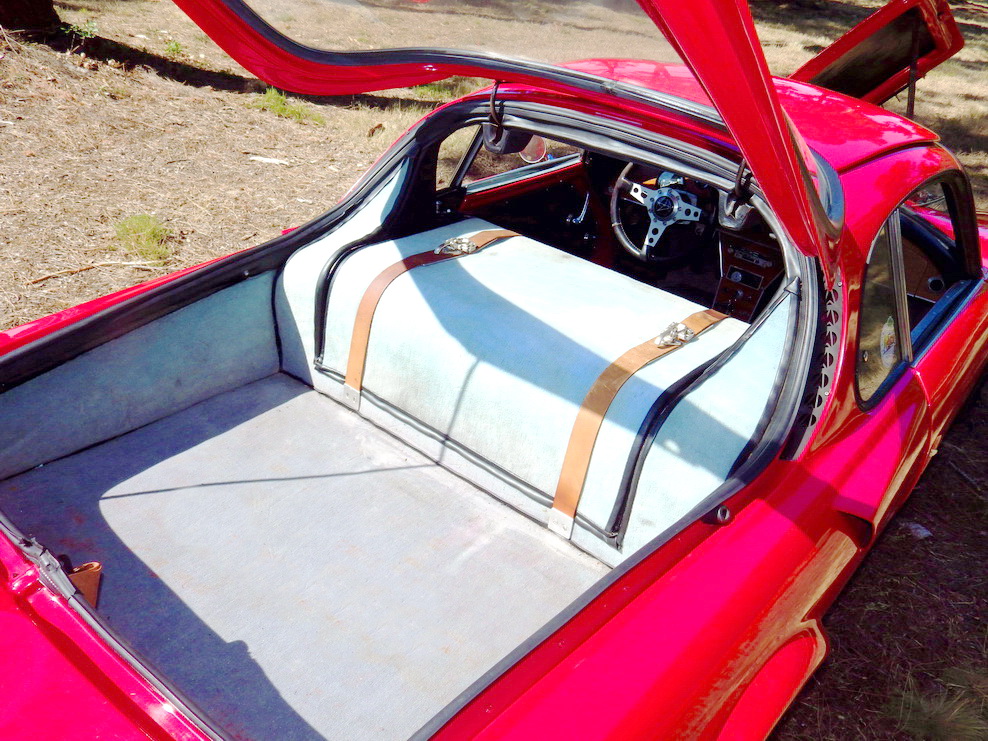 Malgré l'allongement de l'arrière, le volume du coffre à bagage reste succinct car celui de l'avant est occupé par le radiateur d'eau et la roue de secours ainsi que le réservoir