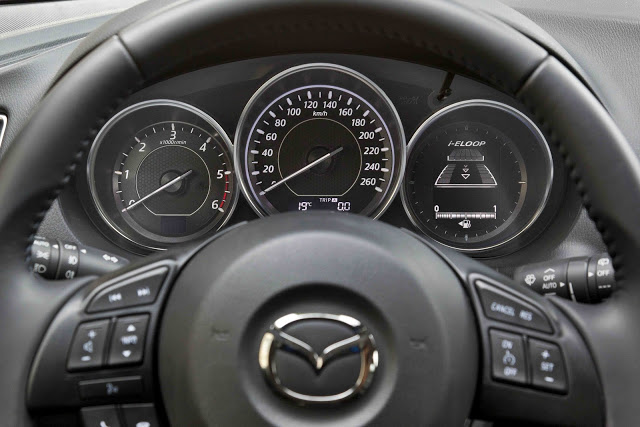 Bonne nouvelle, cette Mazda est aussi très relaxante aux allures légales, portée par un silence étonnant pour un diesel et un confort de roulement de premier ordre. Une réelle polyvalence, rarement atteinte chez la concurrence. L’originalité de cette Mazda 6, ce sont ces motorisations qui inaugurent la technologie exclusive Skyactive. Conscient que le diesel est désormais considéré comme cancérigène par l’O.M.S*, Mazda a pris le problème à la source en réduisant les taux de compression dans les cylindres, 14 : 1, ce qui évite de produire des NOx (Oxyde d’azote) très nuisibles pour la santé. Ajoutez un filtre qui piège les particules et vous obtenez un moteur diesel de 150 ch qui répond aux futures normes européennes Euro 6 en vigueur en septembre 2015. Alors que la norme tolérera 80 milligrammes Nox et 4,5 mg de particules au maximum, la 6 ne rejette que 47 mg de NOx et 0,15 mg de particules dès aujourd’hui, soit l’un des moteurs diesel les plus propres au monde. En parallèle, pour contenir sa consommation, Mazda a développé un récupérateur d’énergie à la décélération nommé I.E.Loop. Il recharge un condensateur qui alimente les systèmes électriques de la voiture en soulageant la batterie et permet d’économiser jusqu’à 10 % de carburant. Résultat, 4,2 l en circulation mixte et 108 g d’émissions de C02, l’équivalent d’une citadine.