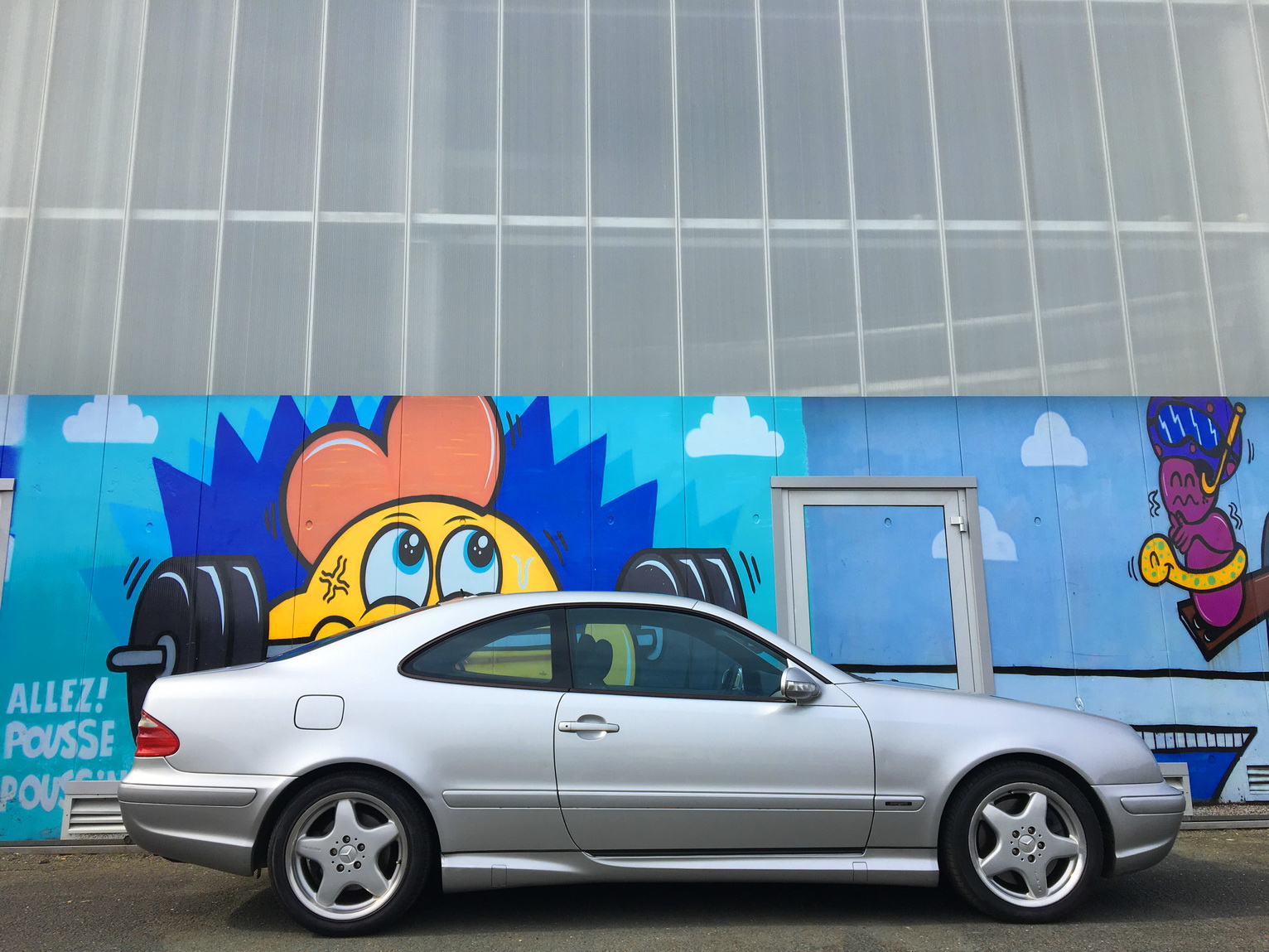 D'où, de nouveau l'achat 15 ans après de ce coupé qui permet d'accueillir aux place arrière "Petit Louis" âgé d'un peu plus de deux ans. " C'est un achat raisonné qui mélange raison familiale et passion car elle a un grand coffre et une esthétique sobre et une bonne réputation de robustesse" avoue-t-il. Un modèle d'origine monégasque en excellent état de 2000 n'avouant que 117 000 km au compteur, ce qui est peu pour ce gros moteur. Si la CLK a été beaucoup essayée à cette époque par la presse spécialisée sous des titres percutants "sauvage " ou " une furie ", elle ne s'est pas beaucoup vendue (3381 ex) à cause de son prix exorbitant, il y a près de 20 ans, de 541 000 francs hors options, supérieur à celui d'une 911. Somme qui correspond sensiblement à plus de 110 000 euros actuels. Autre gros défaut constaté à cette époque sur son châssis sport donnant avec son confort jugé "indigne", noté 3 sur 10 par Sport Auto contre 9 sur 10 pour le moteur. " J'avais oublié que la suspension était aussi dure et pourtant la voiture n'est chaussée que de jantes de 17 pouces. Avec 15 ans de plus, je l'ai trouvée encore plus ferme, sur mauvais revêtement la voiture est vraiment inconfortable ce qui n'est pas le cas sur route. J'ai retrouvé toutes les sensations d'époque plus de nouvelles venues de mon expérience avec une direction très ferme qui donne un touché de route assez exceptionnel surtout quand on sait que cette voiture a 20 ans. "