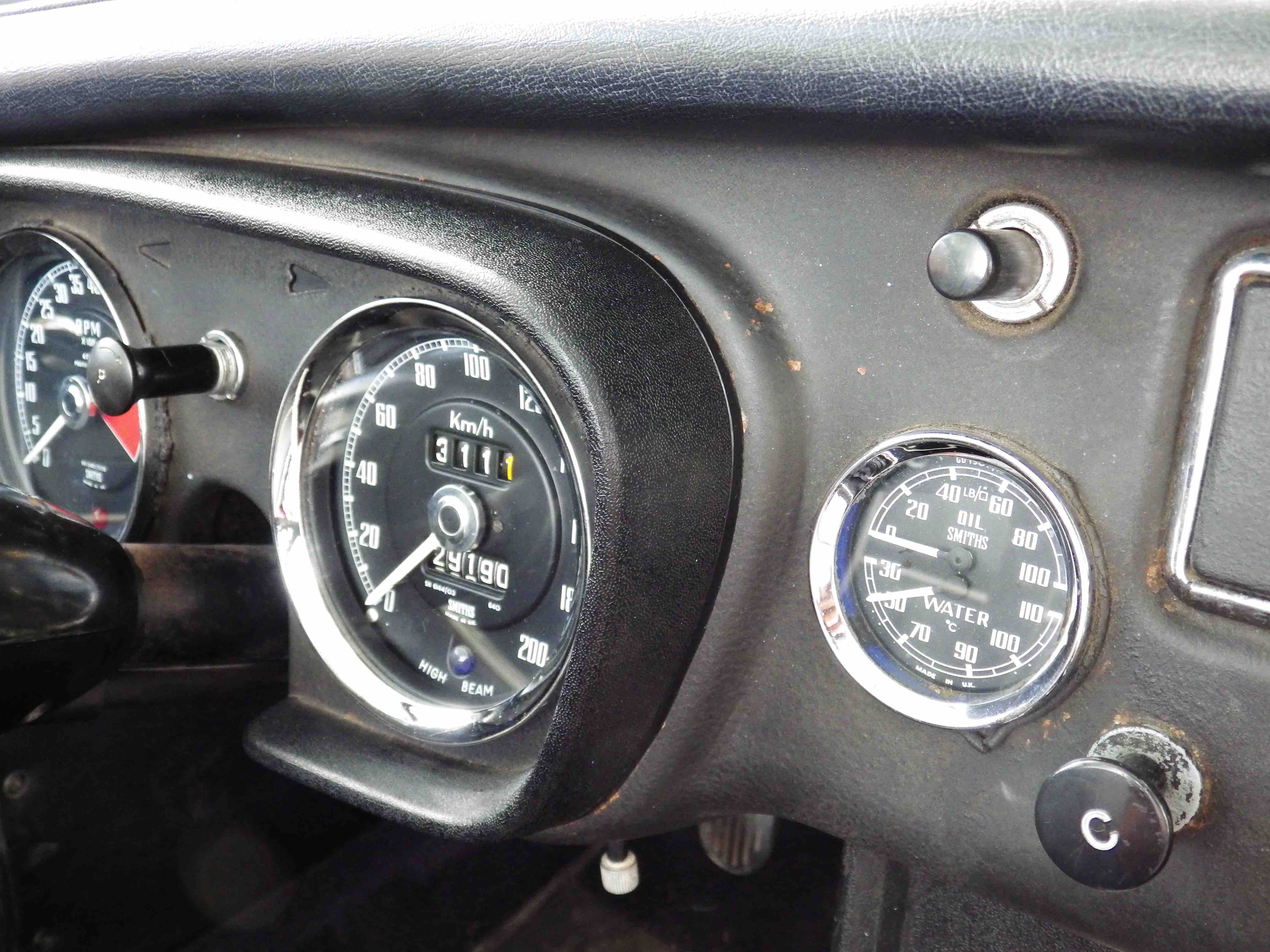 Néanmoins, elle offre ce qui fait le charme fou des sportives anglaises des sixties. Cette magnifique planche de bord noire constellée de manomètres Smiths et de contacteurs, la sonorité gutturale et sourde de l'échappement, au démarrage le cliquetis de la pompe électrique qui alimente les bons vieux carburateurs à cloche SU, sa courte mais virile commande de boîte, les bouffées de chaleur venues de profondeurs de l'habitacle qui se heurtent aux tourbillons d'air dans les cheveux.