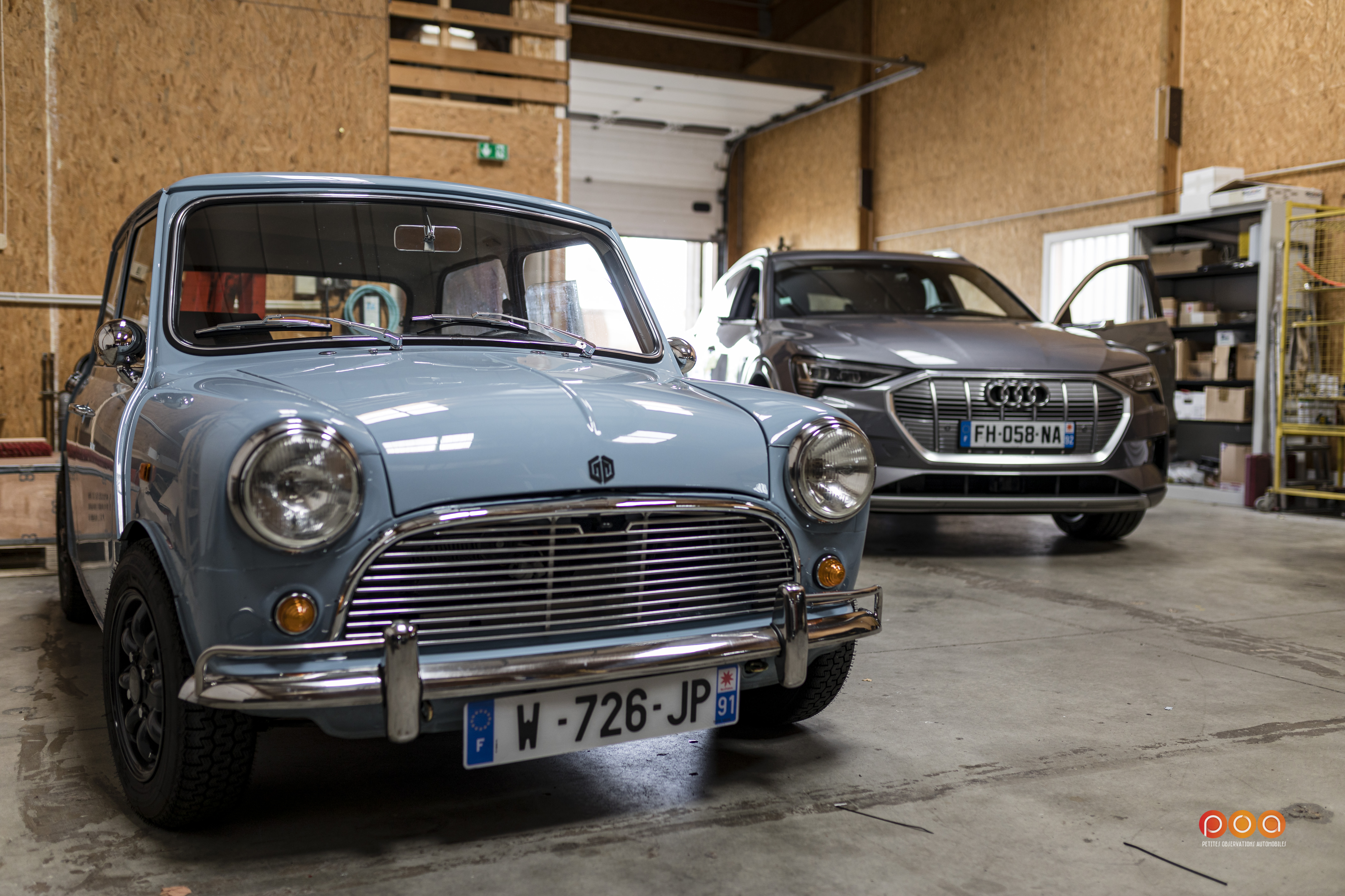 Nous entendons déjà les puristes s’époumoner à dire que l’esprit de la Mini originelle n’est pas respectée avec ce retrofit électrique qui touche en plus à l’intérieur avec une planche de bord en chêne massif: tout d’abord il faut savoir que ces Mini ont suivi un cycle d’homologation ayant mené les deux compères et leur Mini à Chamonix sous la neige comme n’importe quelle autre voiture et sont donc tout à fait aptes à rouler, et elles sont par ailleurs produites à quelques unités au départ…