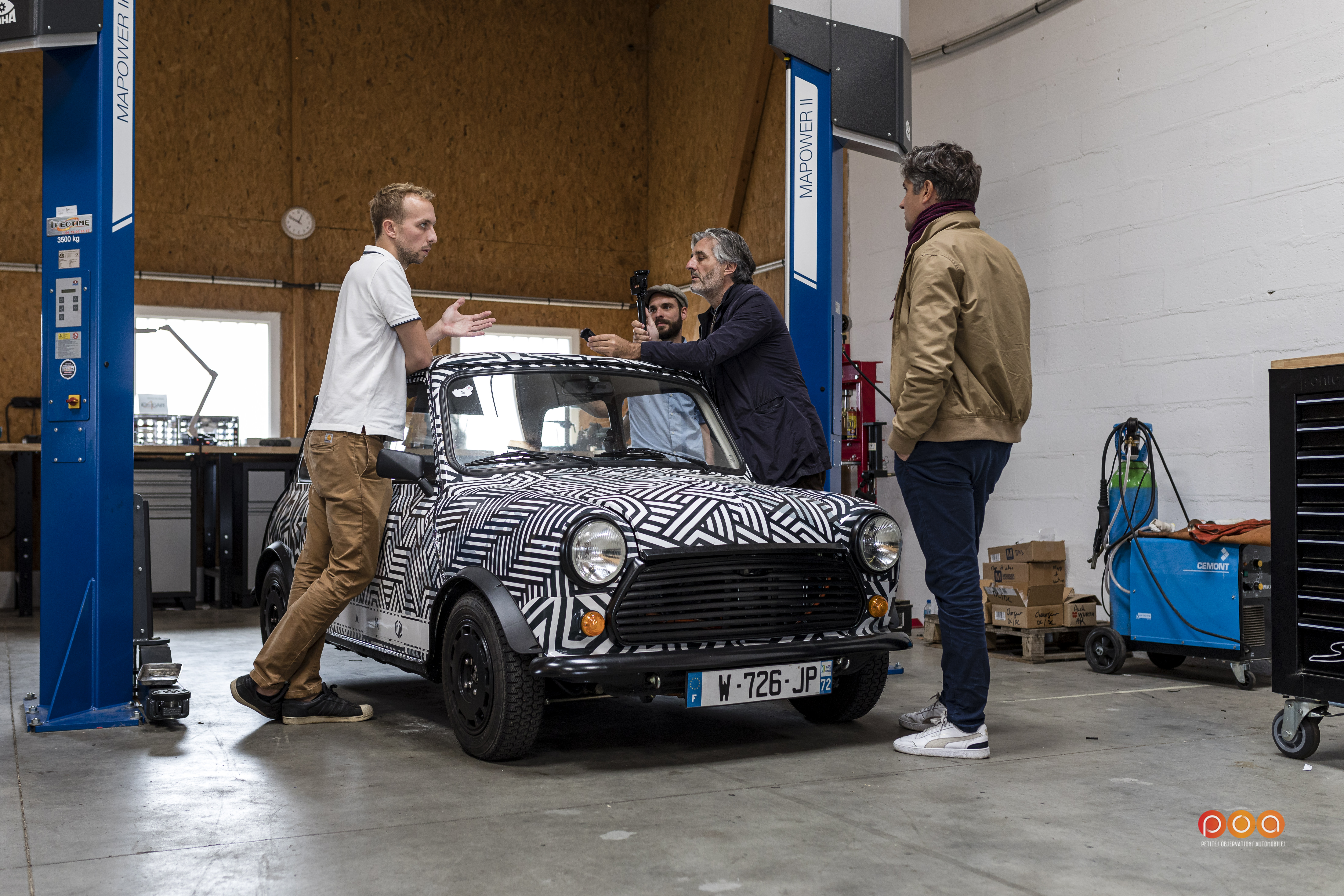 Mais quelle voiture peut bien mettre Julien dans de tels états, semblable à lorsqu’il jouait à Grand Turismo à 12 ans? Une voiture que vous n’avez pas l’habitude de voir: une Mini rétrofitée par Ian motion, une équipe de deux anciens ingénieurs de Renault qui se sont lancés dans ce concept inédit. Le Premier Ministre retrouve lui aussi ses réflexes de pilote de F1, et fait glisser la Mini de l’arrière avec une maîtrise à faire rougir Fangio.