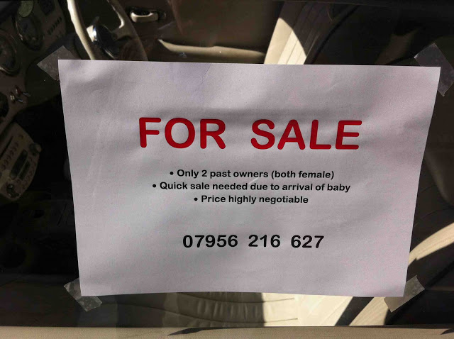 J'aime cette annonce de mise en vente d'un Nissan Figaro croisé dans les rues de Londres. Elle ferait sans doute bondir les féministes en France pour sexisme à l'encontre de son propriétaire. Ce dernier spécifie que les précédents propriétaires ont été des femmes, ce qui laisse entendre que la voiture est dans un meilleur état que si cela avait été des hommes. Révoltez vous messieurs !