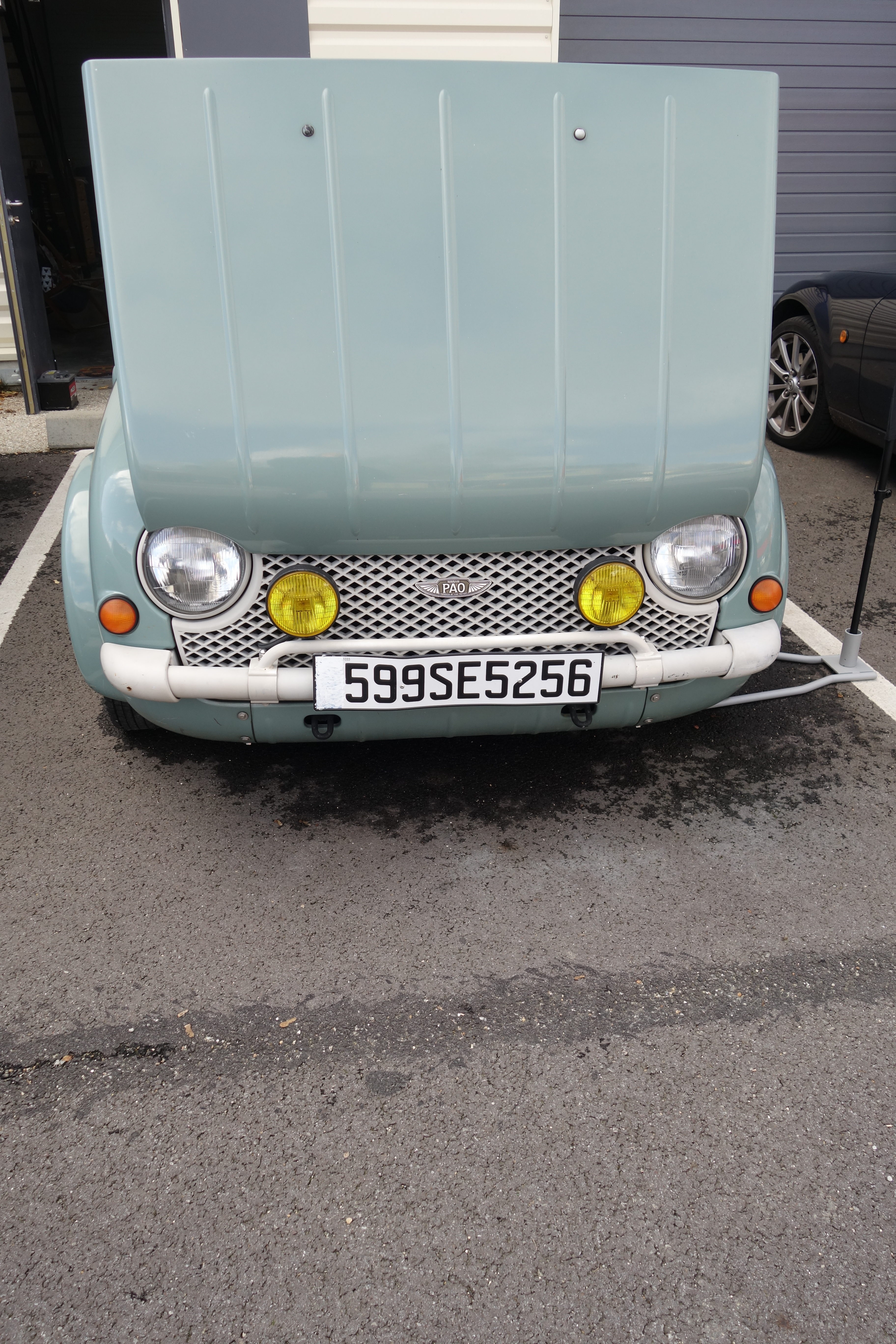 Présentée au Tokyo Motor Show en Octobre 1987, la PAO fut produite de 1989 à 1991, avec ou sans le toit ouvrant en toile. Elle n’était disponible en précommande qu’entre Janvier et Avril 1989. Victime de son succès les 51.657 exemplaires produits furent vendus en 3 mois.La PAO était disponible en 4 couleurs : gris bleu, vert olive, ivoire et rouge brique. Les intérieurs étaient soit noirs soit ivoires. La radio K7 FM stéréo était de série. Si la forme générale peut évoquer une 4 L, les charnières apparentes rappellent les premières Austin Mini, les vitres basculantes arrières rappelleront aux propriétaires de 2 cv leurs coudes douloureux.