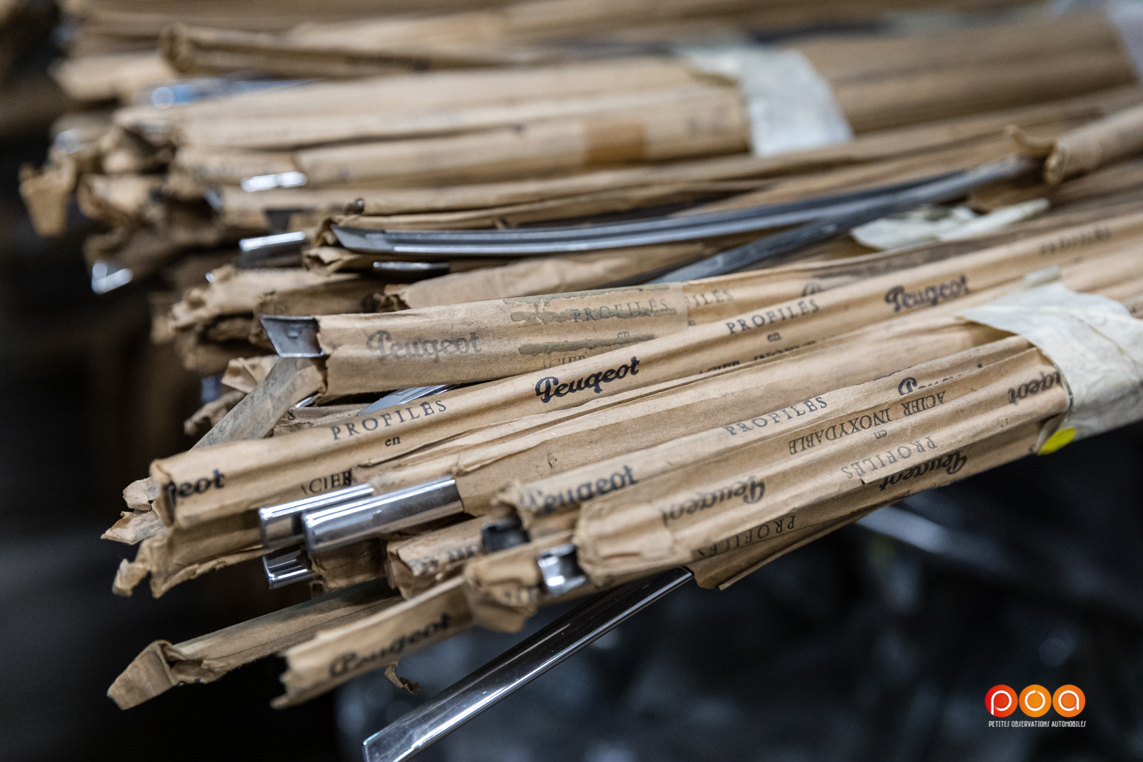 La collection est ainsi affaire de patience, mais si vous voulez un scoop nous pouvons vous dire que les bas de caisse de 203 seront bientôt refabriqués, voilà qui va égayer votre journée! Eric Barthelat est comme dans son salon dans cette ce stock insensé: il reconnaît au premier coup d’oeil une portière arrière de 504 derrière une forêt de feuilles de tôle.
