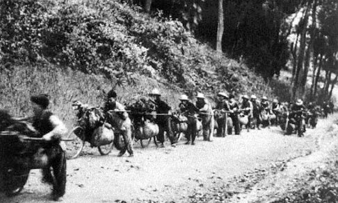 Quinze berges plus tôt, les français s’enlisaient au Tonkin et les biclous bazardés aux niakoués allaient y prendre leur part. Ce sont près de vingt mille bécanes Peugeot sorties tout droit de la Manuf’ de Saint-Etienne, qui, sous le joug du Viêt-Minh, seront chargées raz la gueule par les coolies pour bagotter les pétoires et le rata à Hot-Pot aux troupes du tigre tapies dans la jungle le jour, pour mieux saper le moral du corps expéditionnaire de l’éléphant tricolore, la nuit.