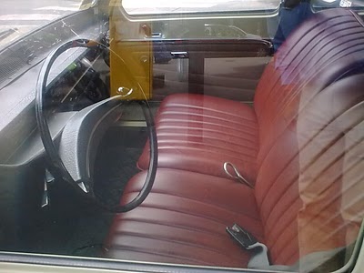 Si cette Renault 6 de 1970 a peu d'intérêt, son état de conservation est stupéfiant. Agée de 40 ans, elle semble sortie d'usine : Carrosserie sans marques apparentes, pare choc impeccables, ni piqués, ni bosselés, peinture quasi neuve, banquette nickel, tableau de bord sans craquelure.. seul manque à l'appel l'essuie glace gauche. C'est d'autant plus étonnant, que j'ai photographié la voiture garée dans la rue, donc exposée à tous les chocs. Son propriétaire mérite la palme d'or de l'entretien ou de la restauration.
