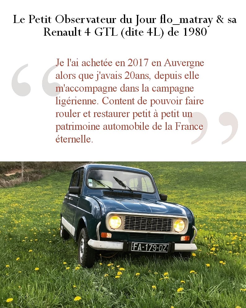 😊Le Petit Observateur du Jour : @flo_matray & sa Renault 4 GTL (dite 4L), de 1980.