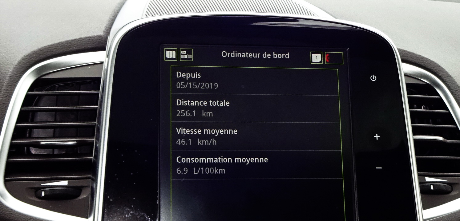 Avec 1700 kilos et 225 chevaux, il ne faut pas s'attendre à une consommation miraculeuse. En prenant mon Espace, le chiffre lu à l'ordinateur de bord réalisé par l'ancien possesseur m'a effaré. Il ne devait pas payer le carburant ! Avec une conduite de père de famille en goûtant le silence et le confort de ce véhicule, je suis redescendu à des chiffres beaucoup plus bas en activant la touche Eco après avoir joué avec les divers modes de conduite pour voir. En Eco, ma consommation n'a pas dépassé 7 litres aux 100 et je suis même parvenu à 6,7 litres. C'est très honnête !