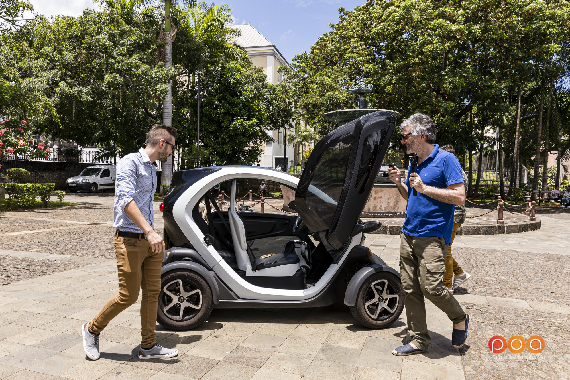 C’est pour POA l’occasion rêvée de se balader en Twizy dans les rues de Saint-Denis, la capitale, et interviewer Romain sur les attentes et spécificités du marché du véhicule électrique à la Réunion.