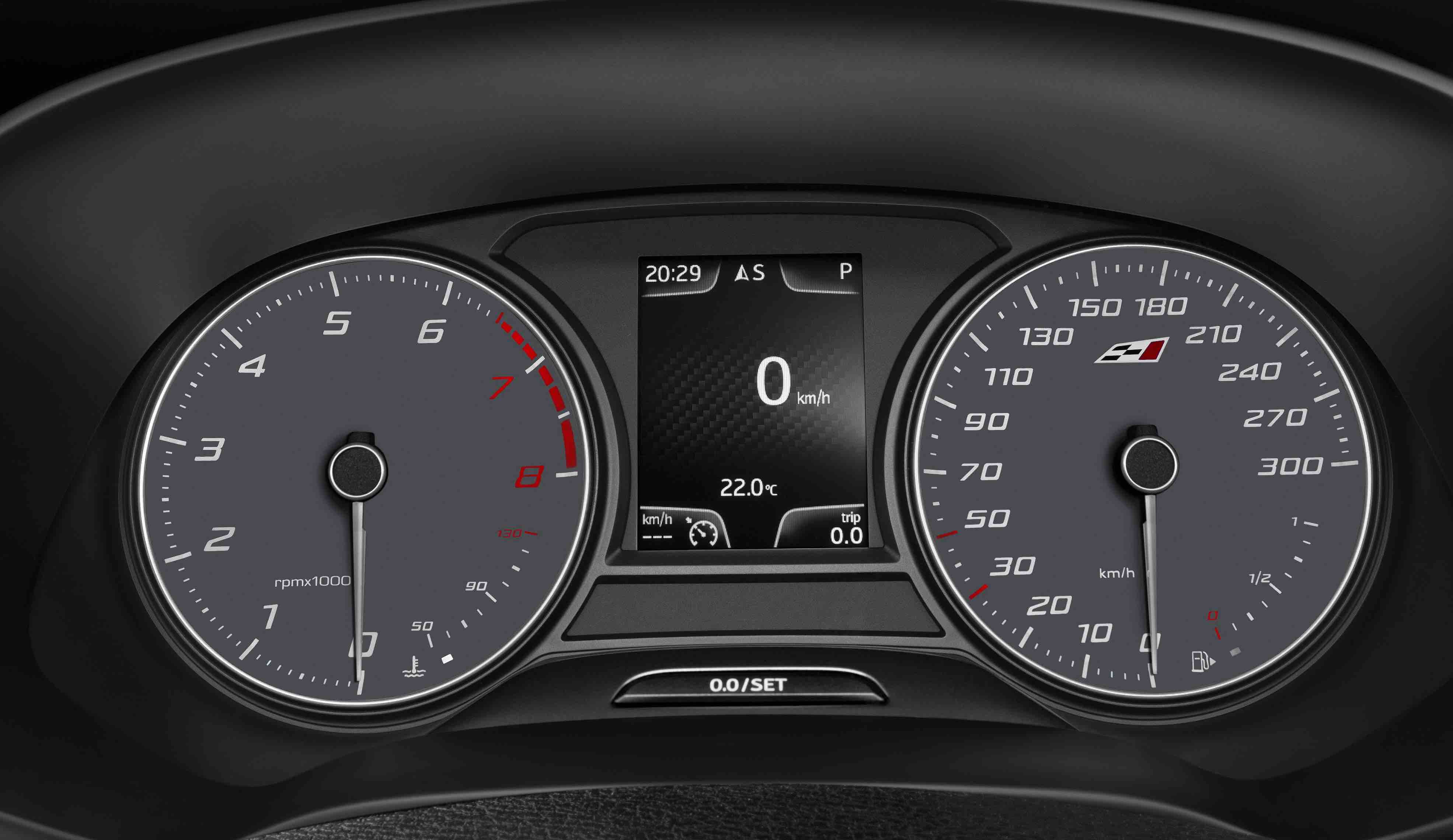 On est tout de suite dans l’ambiance performance en pénétrant dans la Seat Leon SC Cupra. J’imagine la tête de responsable de la Ligue contre la Violence Routière à la vue du tachymètre gradué jusqu’à 300 km/h. Qu’elle se rassure, c’est une vitesse que n’atteint pas la Seat Leon Cupra « sagement » limitée à 250 km/h sur circuit. Mais elle y va vite, très vite en moins de 6 secondes pour atteindre le mur des 100 km/h et 24,9 secondes pour celui des 1000 mètres départ arrête ! Un véritable missile.
